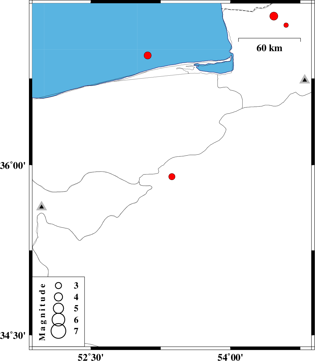 | 2017/04/24 | 11:09:12.2 | 15:39:12.2 | 36.95 | 53.111 | 14 | ML3.5 | Caspian Sea, 44 km North of Sari | ||