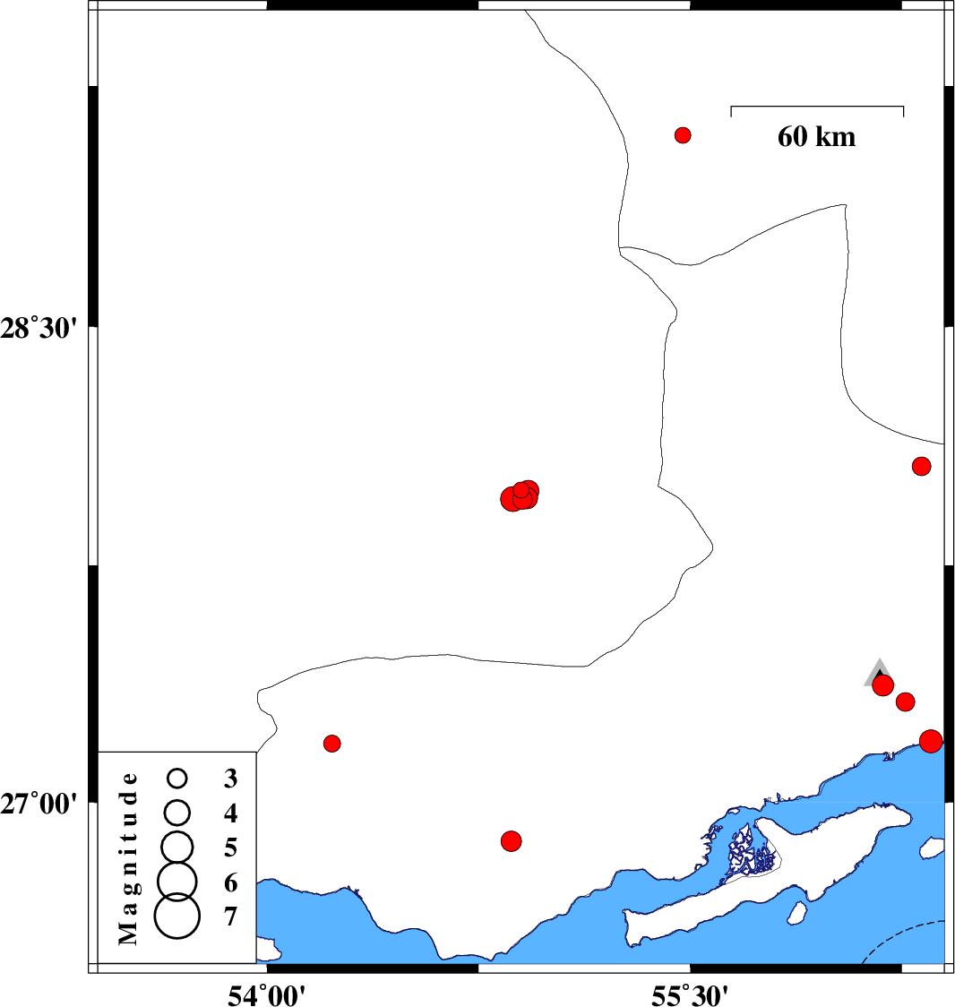 |  | 2017/04/29 | 08:43:06.8 | 13:13:06.8 | 27.987 | 54.9 | 14 | ML2.6 | Fars Province, 65 km North-East of Lar |  |