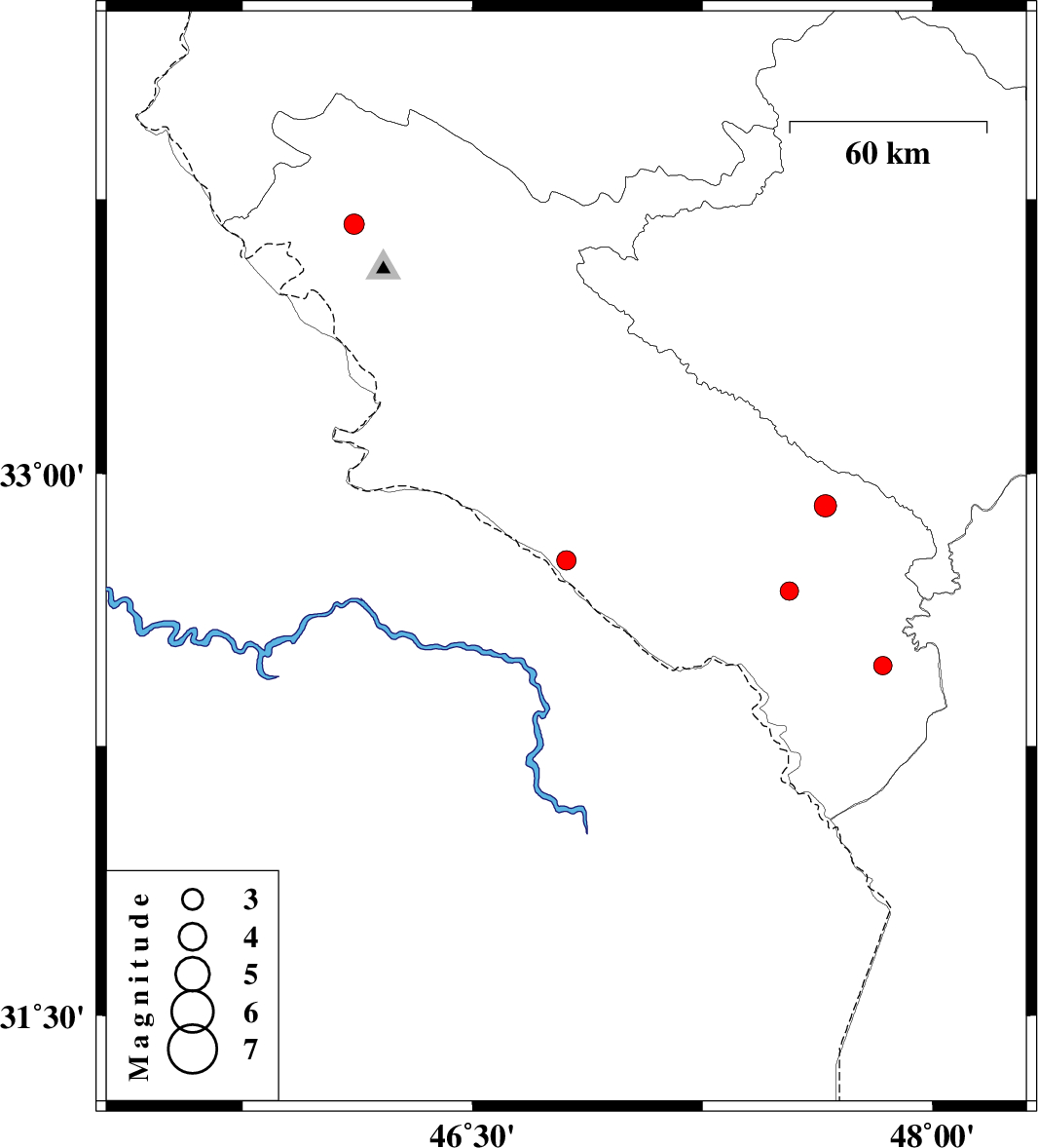 | 2017/04/07 | 17:51:55.9 | 22:21:55.9 | 32.472 | 47.838 | 14 | ML2.7 | Ilam Province, 48 km -West of Andimeshk |