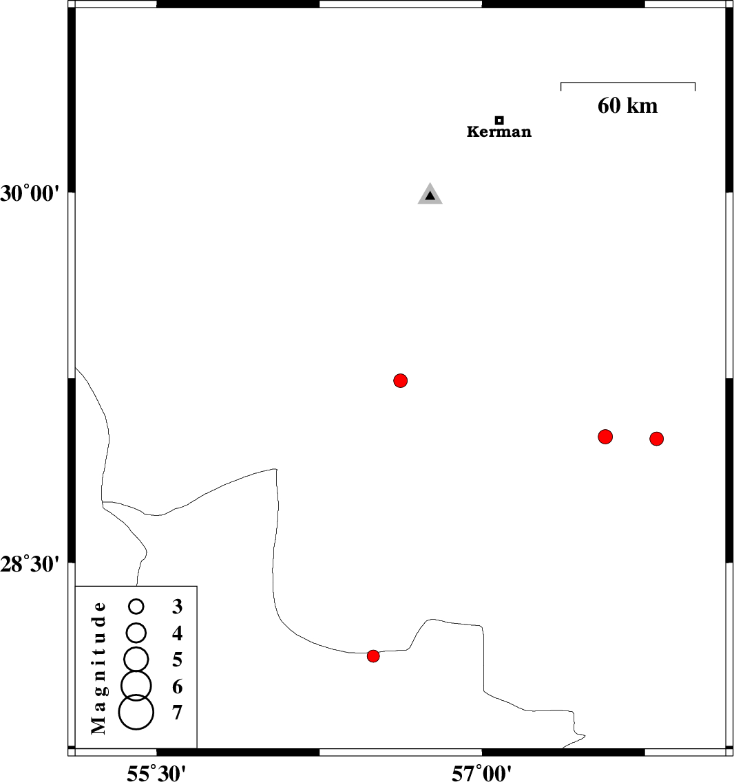 | 2017/05/03 | 17:28:49.2 | 21:58:49.2 | 29.013 | 57.567 | 27 | ML3 | Kerman Province, 42 km North-West of Jiroft | ||