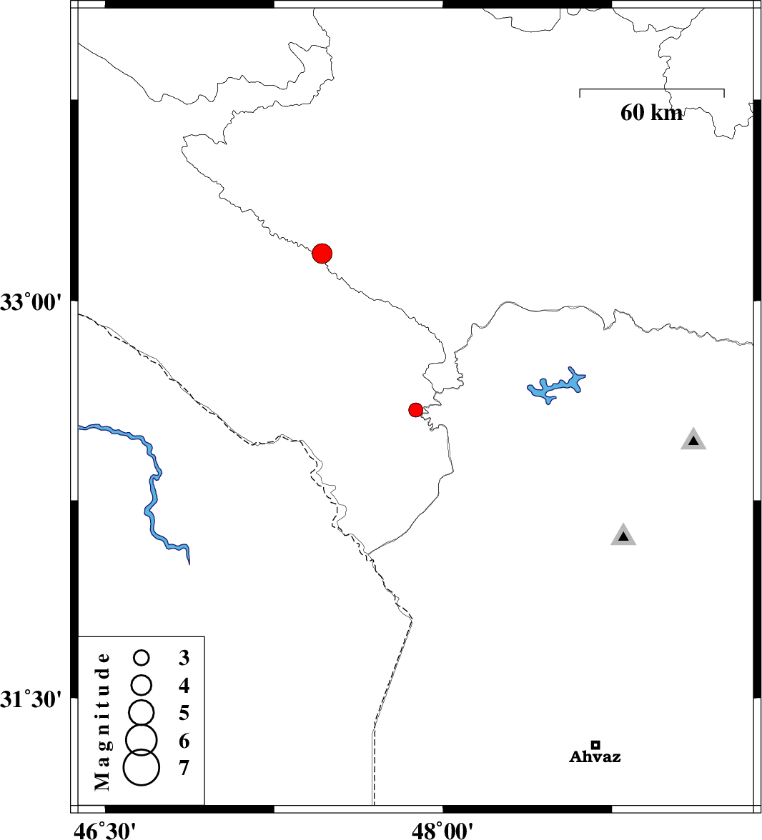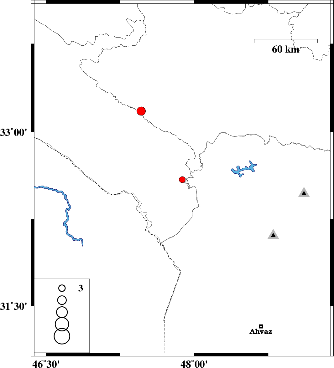 | 2017/05/12 | 18:09:17.1 | 22:39:17.1 | 32.59 | 47.879 | 14 | ML2.8 | Ilam Province, 47 km North-West of Andimeshk | ||