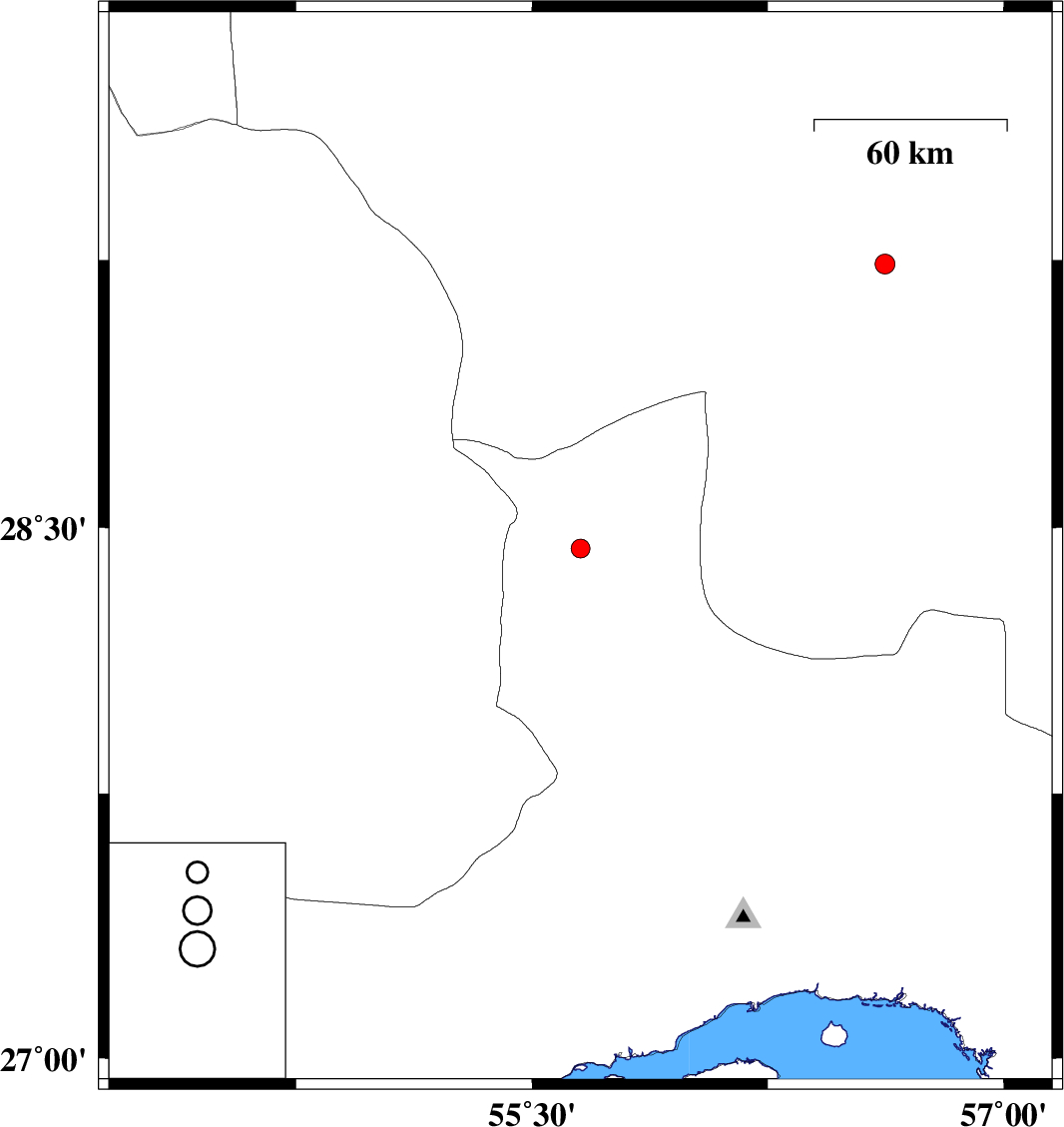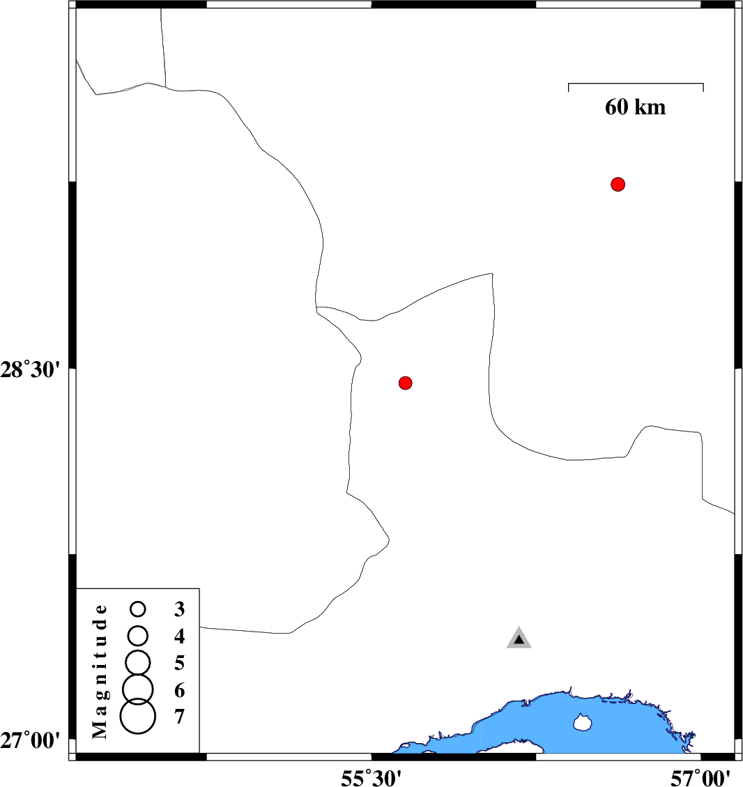 | 2017/05/10 | 19:04:36.0 | 23:34:36.0 | 28.441 | 55.654 | 7 | ML2.7 | Hormozgan Province, 28 km North-West of Hajiabad | ||
