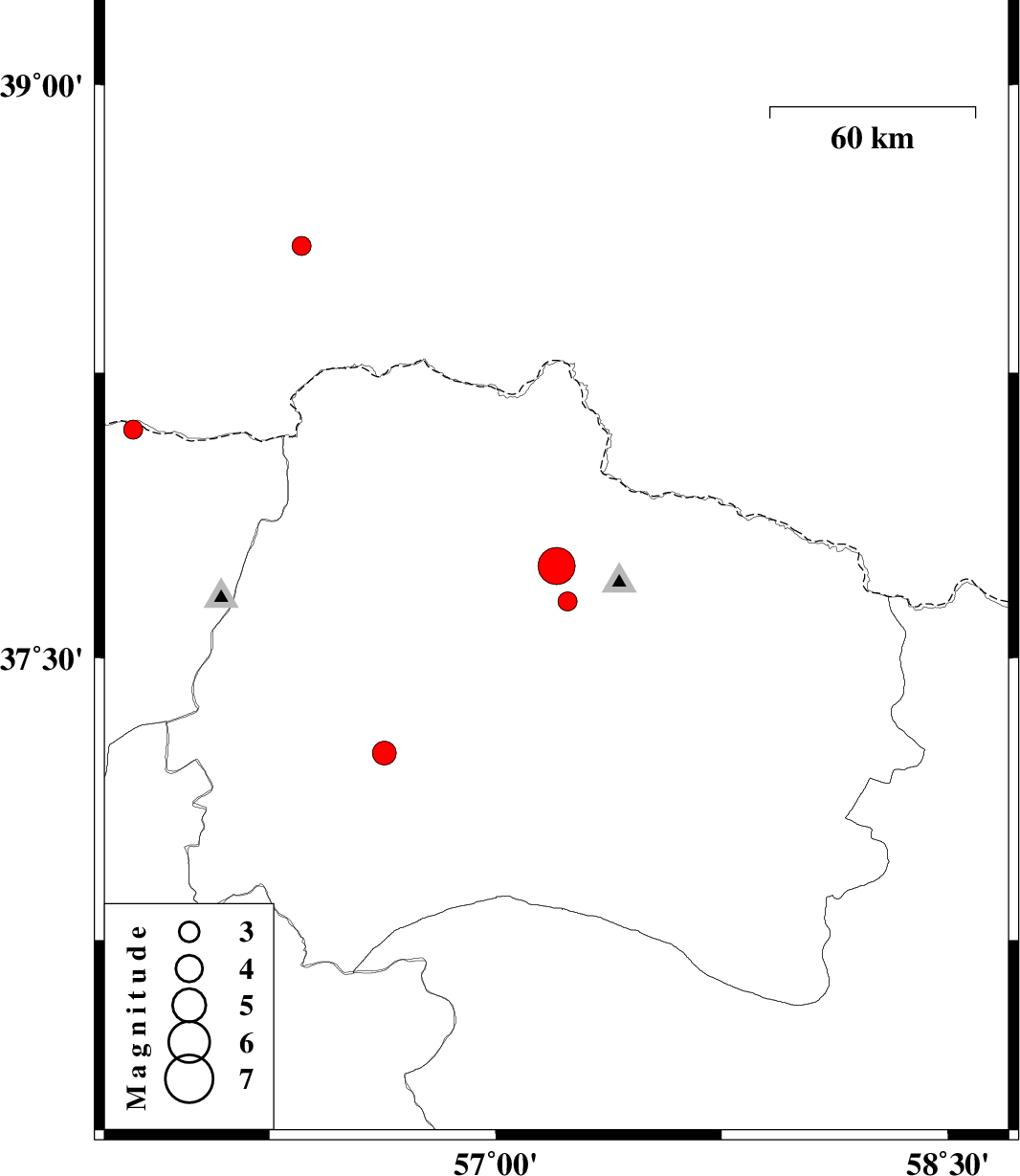 | 2017/05/05 | 08:12:01.8 | 12:42:01.8 | 38.102 | 55.798 | 14 | ML2.8 | Golestan Province, 85 km North-East of Kalaleh | ||