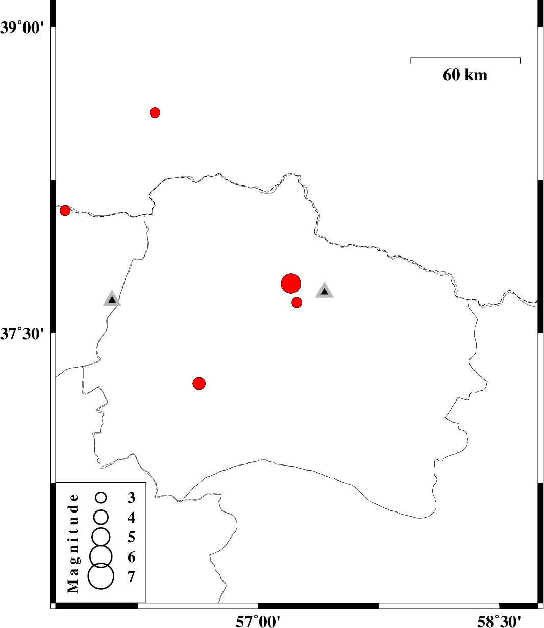 | 2017/05/05 | 08:12:01.8 | 12:42:01.8 | 38.102 | 55.798 | 14 | ML2.8 | Golestan Province, 85 km North-East of Kalaleh | ||