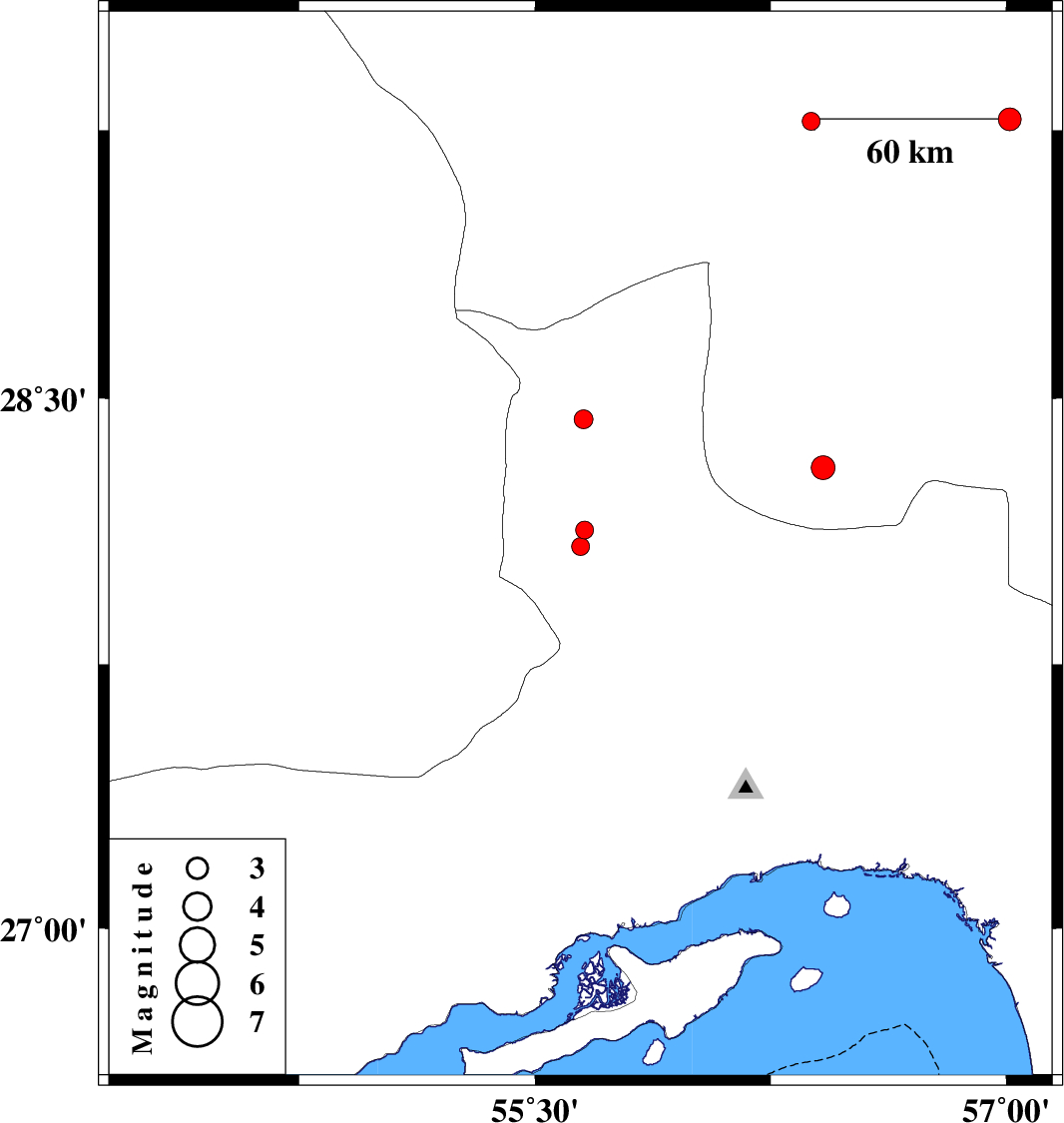 2017/05/15 18:39:43.9 23:09:43.9 28.1355.65818 ML2.6 Hormozgan Province, 31 km South-West of Hajiabad