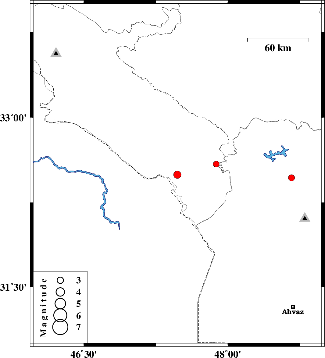 | 2017/05/16 | 11:06:44.1 | 15:36:44.1 | 32.495 | 47.474 | 14 | ML3.5 | Ilam Province, 30 km South-East of Dehloran | ||