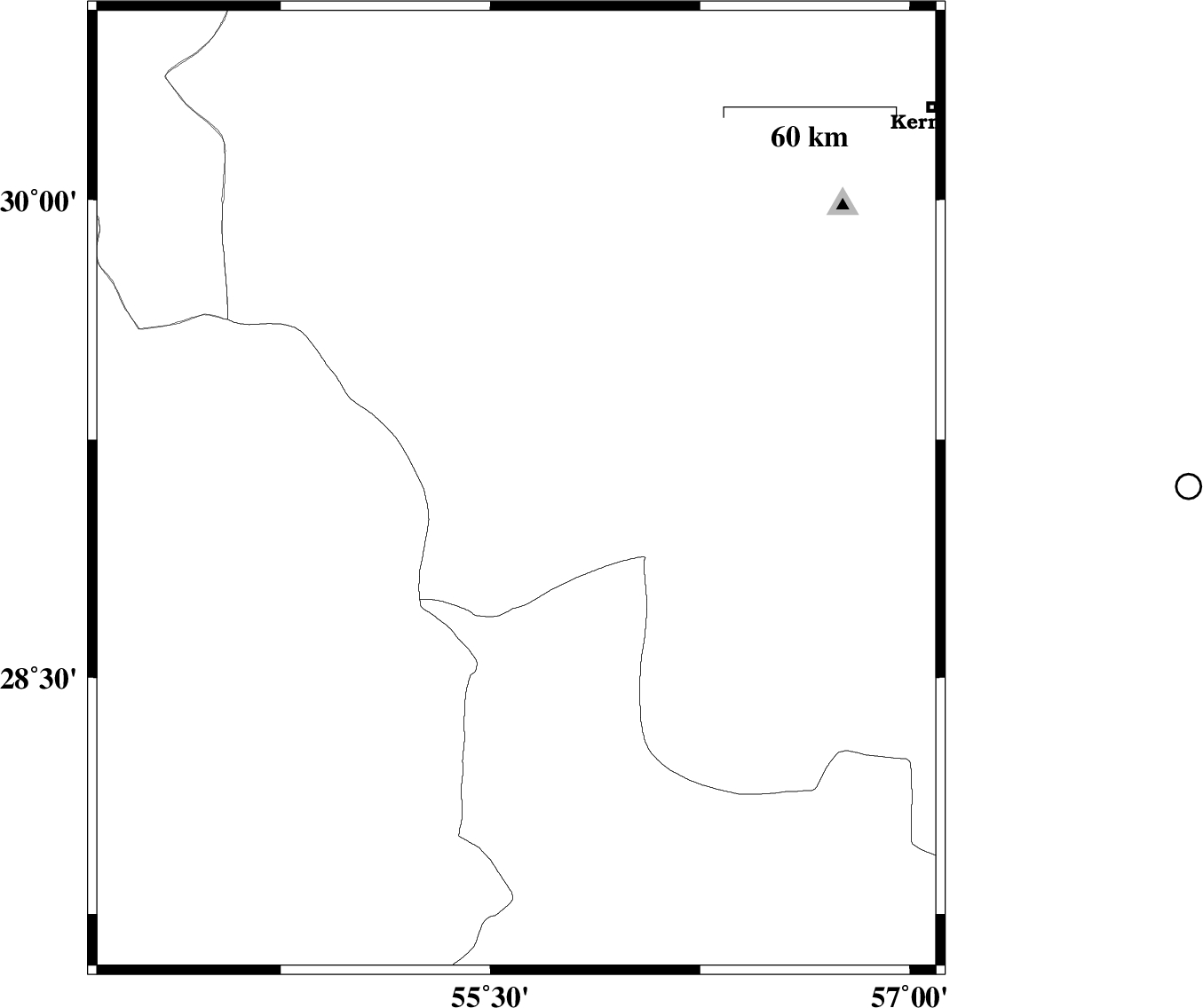 | 2017/05/23 | 10:57:57.2 | 15:27:57.2 | 29.088 | 55.593 | 14 | ML2.5 | Kerman Province, 41 km South of Sirjan | ||