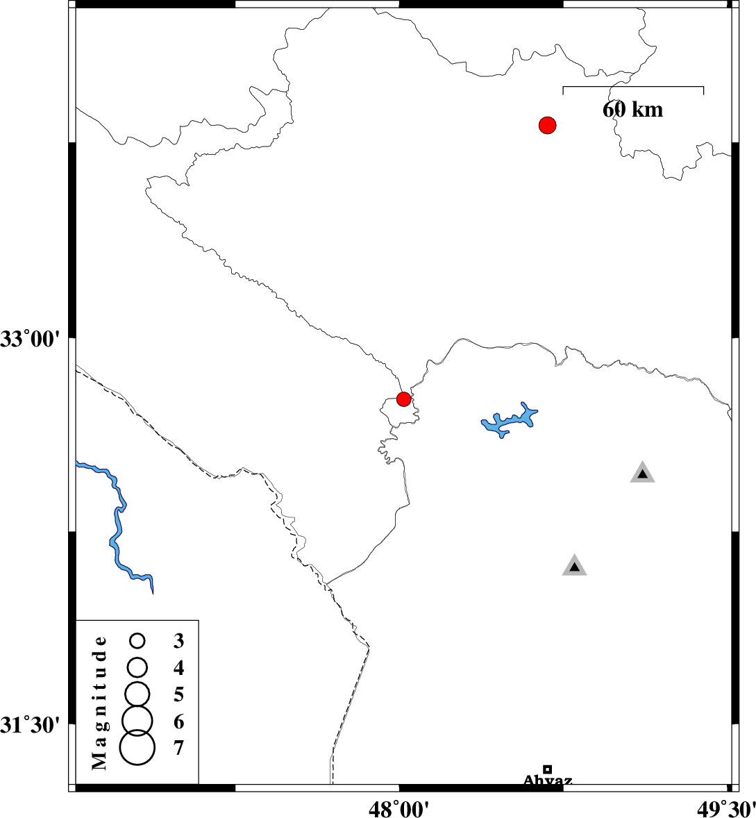 | 2017/05/24 | 00:18:07.1 | 04:48:07.1 | 33.815 | 48.677 | 15 | ML3.5 | Lorestan Province, 12 km of Borujerd |