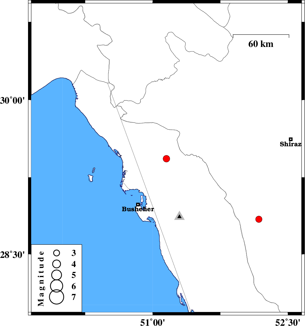 | 2017/05/28 | 00:21:04.3 | 04:51:04.3 | 28.841 | 52.177 | 14 | ML3.2 | Fars Province, 9 km of Farashband |
