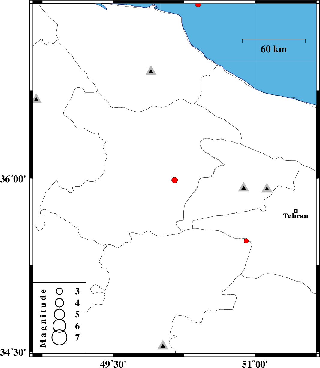 | 2017/05/30 | 10:16:05.9 | 14:46:05.9 | 37.482 | 50.398 | 14 | ML2.8 | Caspian Sea, 40 km North-East of Rudsar | ||