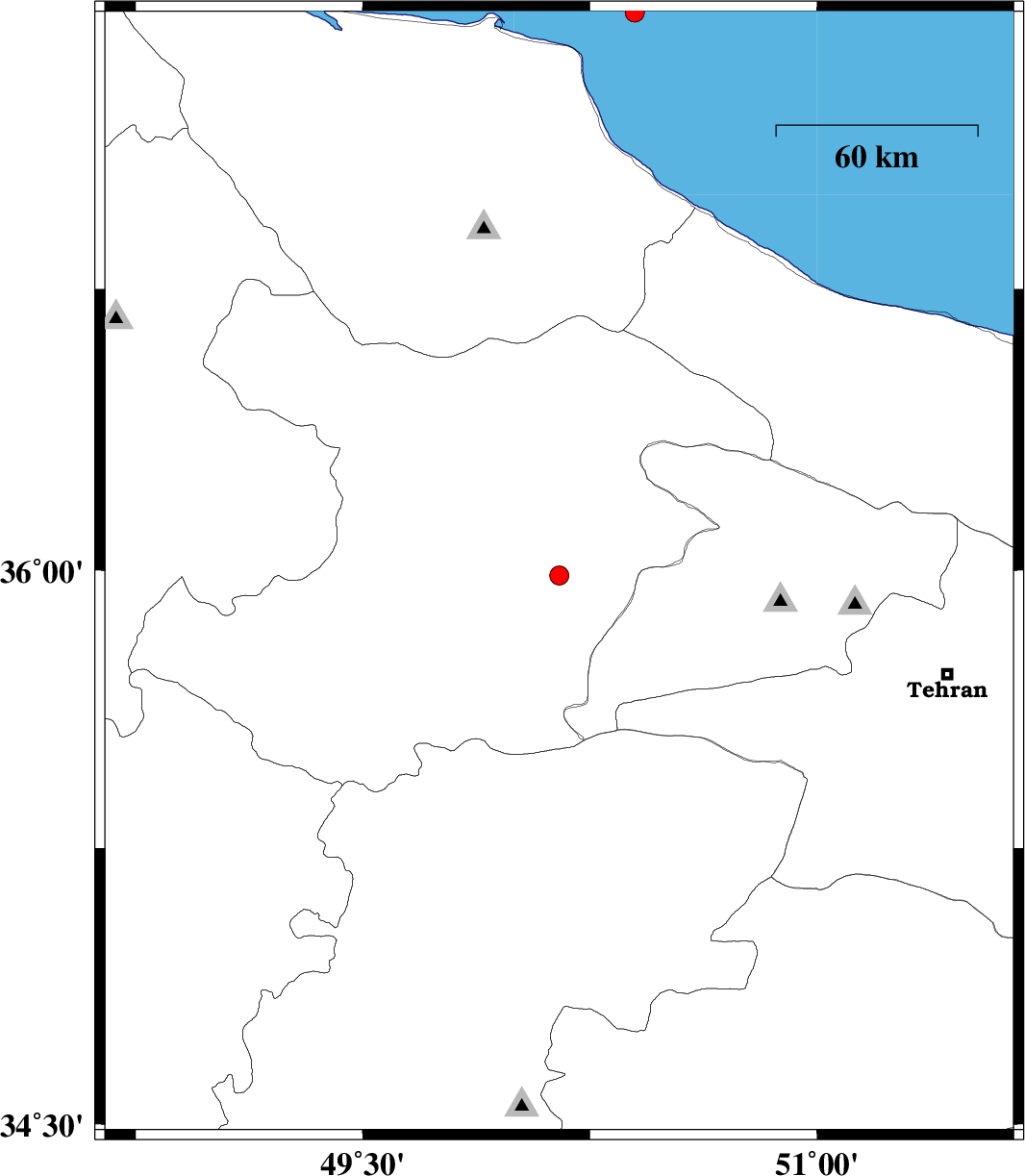 | 2017/05/30 | 10:16:05.9 | 14:46:05.9 | 37.482 | 50.398 | 14 | ML2.8 | Caspian Sea, 40 km North-East of Rudsar |