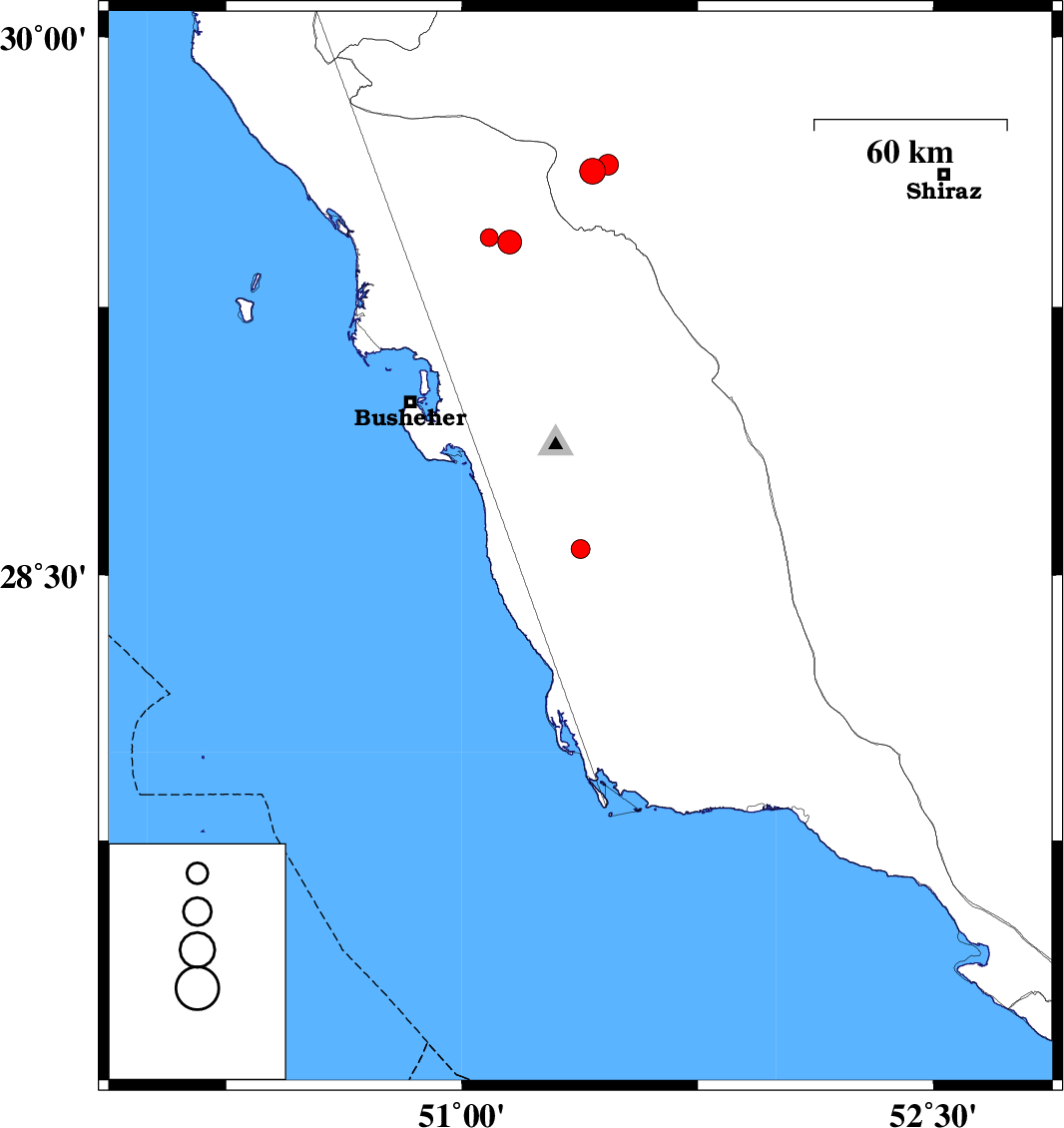 | 2017/06/03 | 11:21:56.1 | 15:51:56.1 | 29.627 | 51.415 | 14 | ML3.7 | Fars Province, 23 km -West of Kazerun | ||