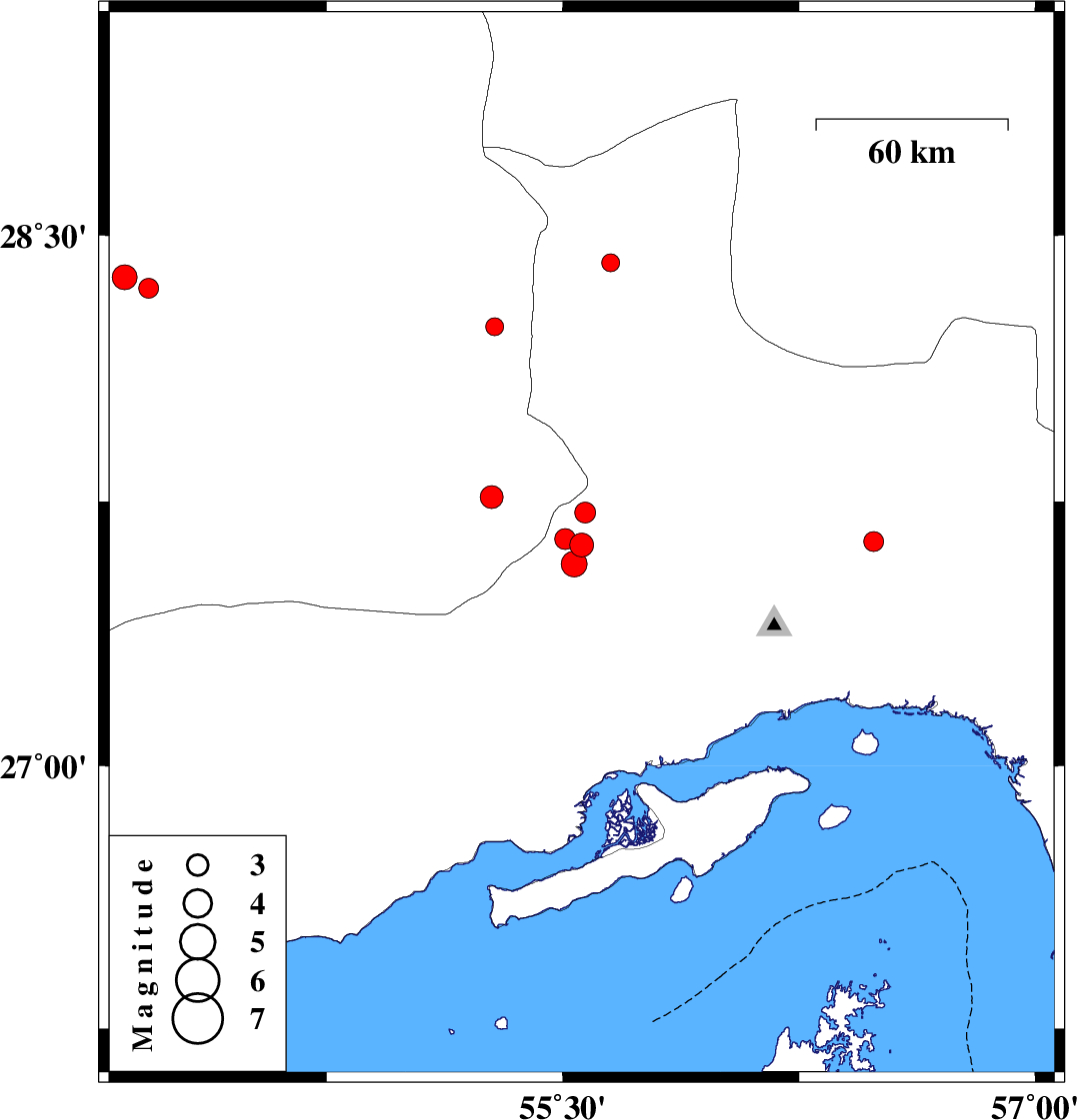 2017/06/09 13:55:02.9 18:25:02.9 27.71955.57218 ML3 Hormozgan Province, 73 km South-West of Hajiabad