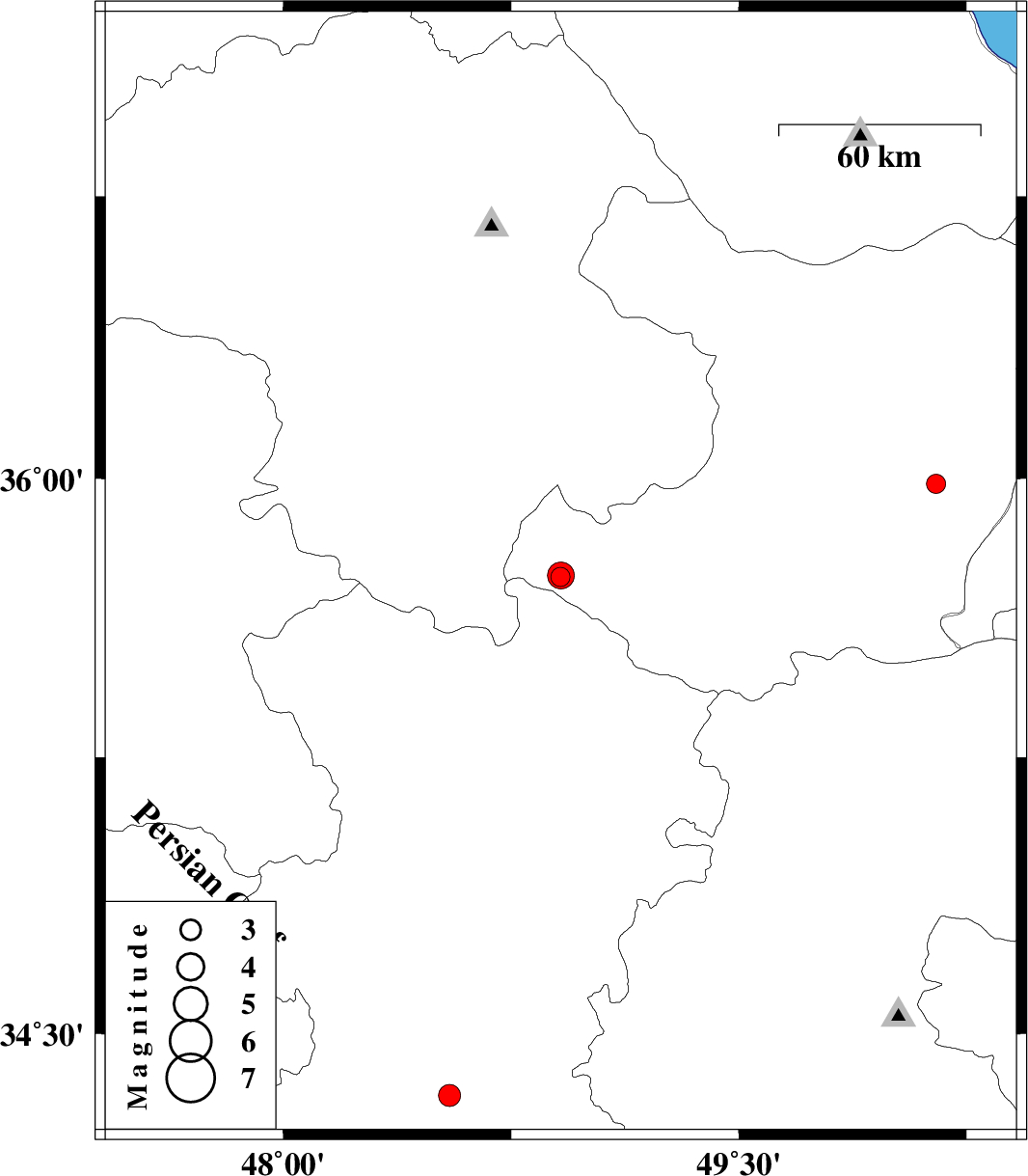 | 2017/05/14 | 13:18:41.1 | 17:48:41.1 | 34.332 | 48.548 | 15 | ML3.3 | Hamedan Province, 25 km -West of Malayer |