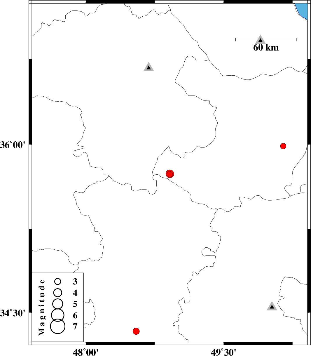 | 2017/05/14 | 13:18:41.1 | 17:48:41.1 | 34.332 | 48.548 | 15 | ML3.3 | Hamedan Province, 25 km -West of Malayer |