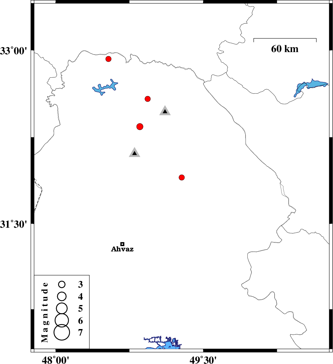 | 2017/06/15 | 18:07:51.5 | 22:37:51.5 | 32.925 | 48.536 | 14 | ML2.6 | Khoozestan Province, 54 km North-East of Andimeshk |