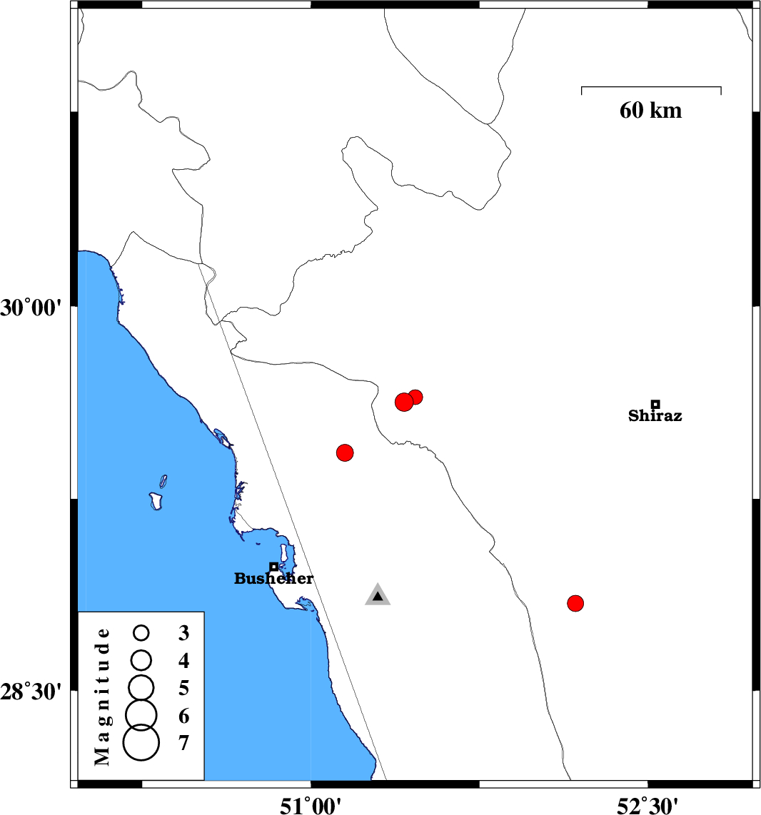 | 2017/05/28 | 00:21:04.3 | 04:51:04.3 | 28.841 | 52.177 | 14 | ML3.2 | Fars Province, 9 km of Farashband |
