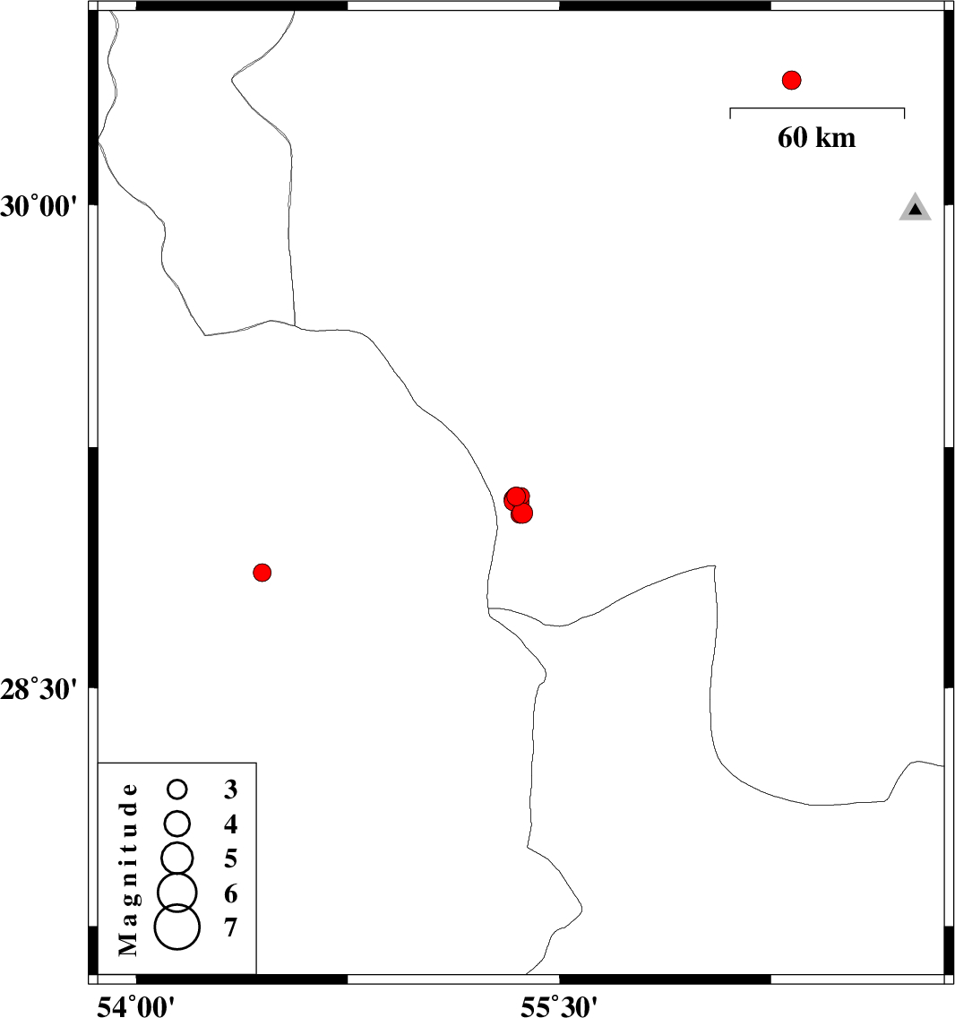 2017/07/13 11:07:08.5 15:37:08.5 29.08955.33414 ML2.7 Kerman Province, 52 km South-West of Sirjan