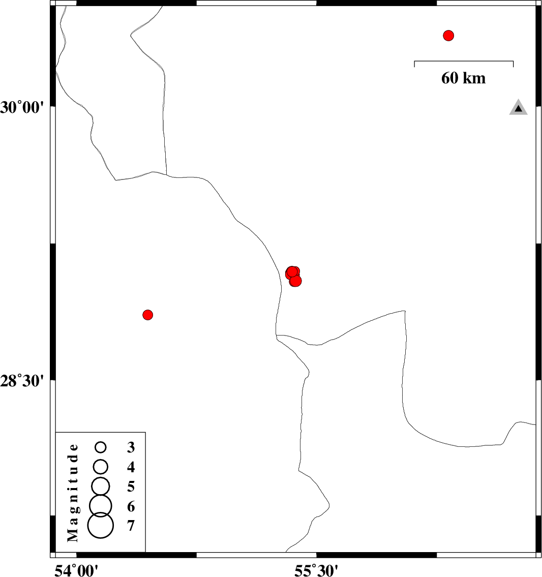 2017/07/13 11:07:08.5 15:37:08.5 29.08955.33414 ML2.7 Kerman Province, 52 km South-West of Sirjan