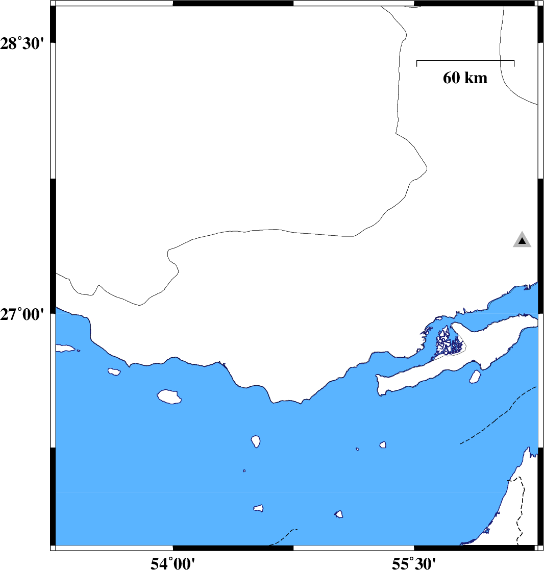 | 2017/07/12 | 07:59:58.7 | 12:29:58.7 | 27.105 | 55.196 | 18 | ML2.8 | Hormozgan Province, 83 km -East of Bastak | ||
