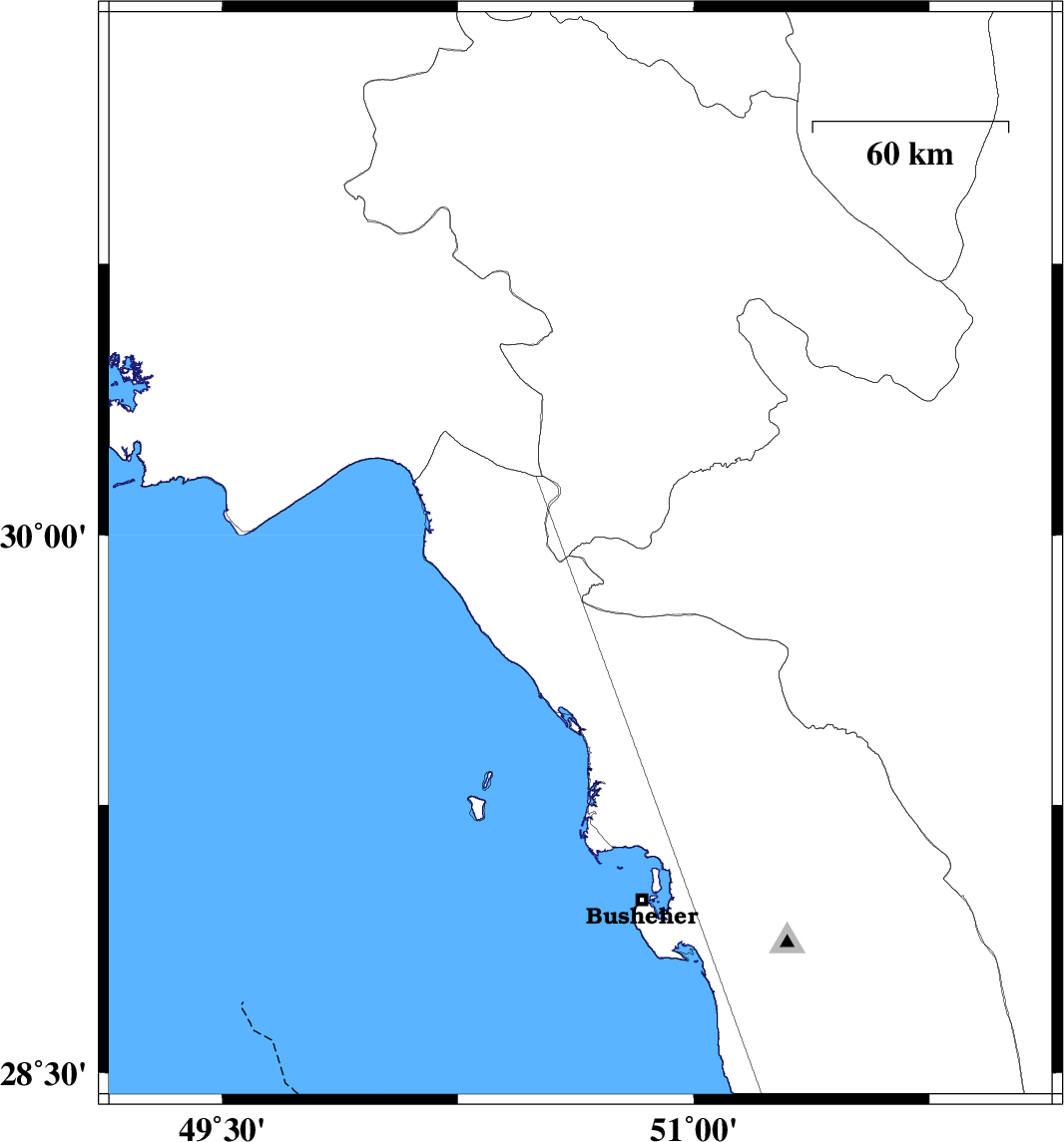 | 2017/07/19 | 07:03:41.0 | 11:33:41.0 | 29.941 | 50.64 | 18 | ML3.6 | Fars Province, 43 km North-East of Bandar-e genaveh | ||