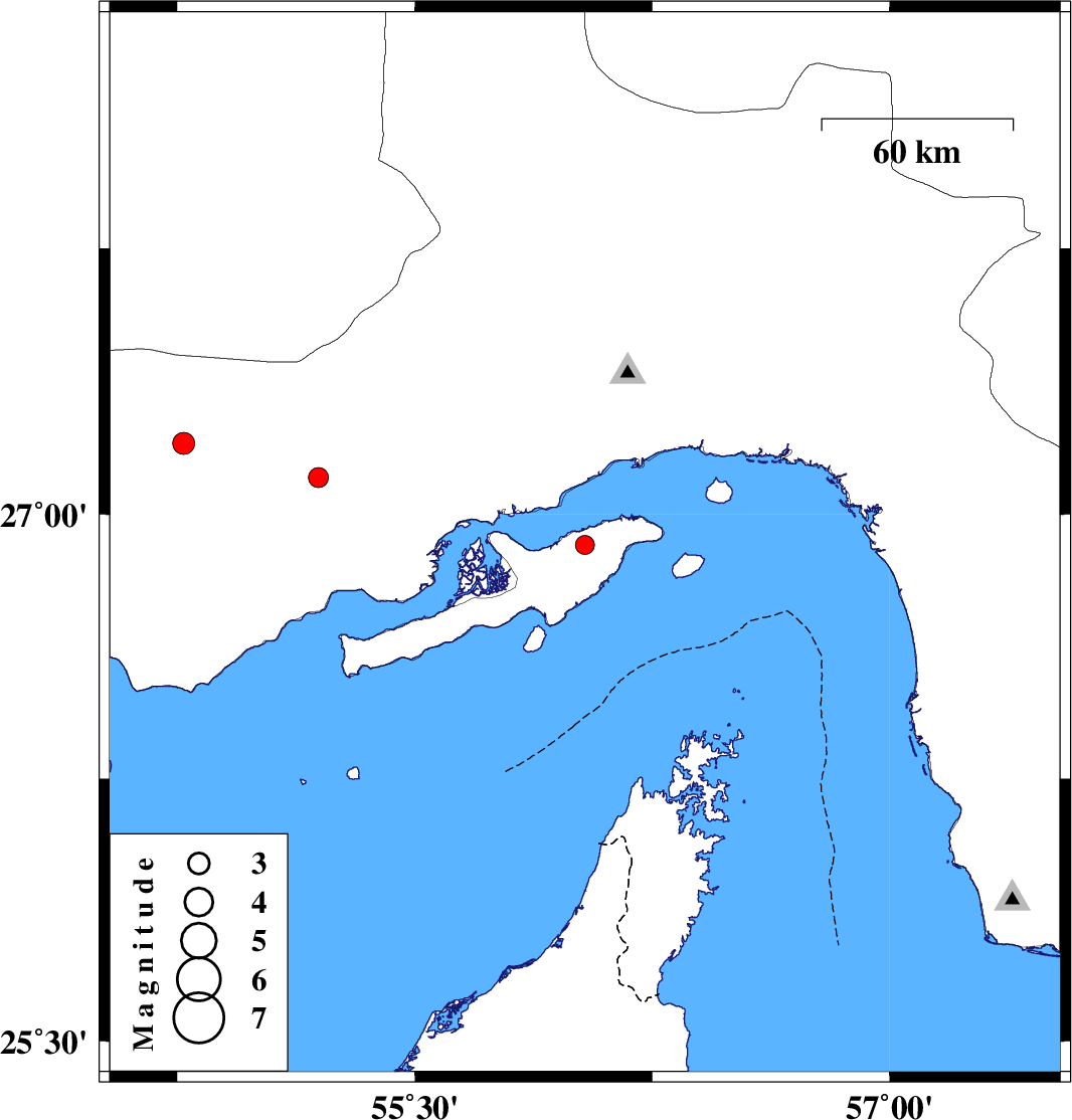 | 2017/07/19 | 22:06:43.5 | 02:36:43.5 | 26.914 | 56.037 | 12 | ML2.7 | Persian Gulf, 23 km -West of Qeshm | ||