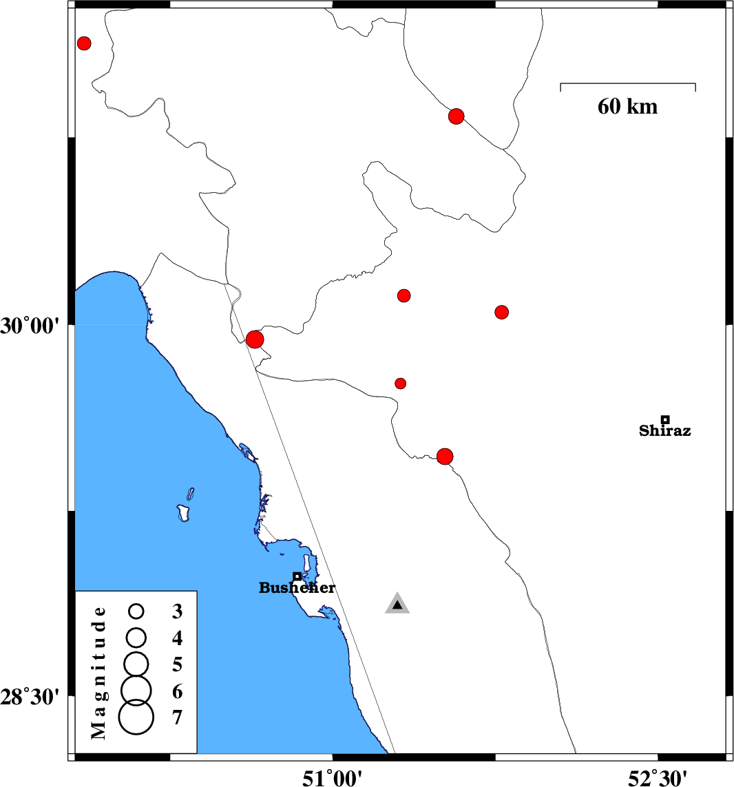 2017/07/19 07:03:41.0 11:33:41.0 29.94150.6418 ML3.6 Fars Province, 43 km North-East of Bandar-e genaveh