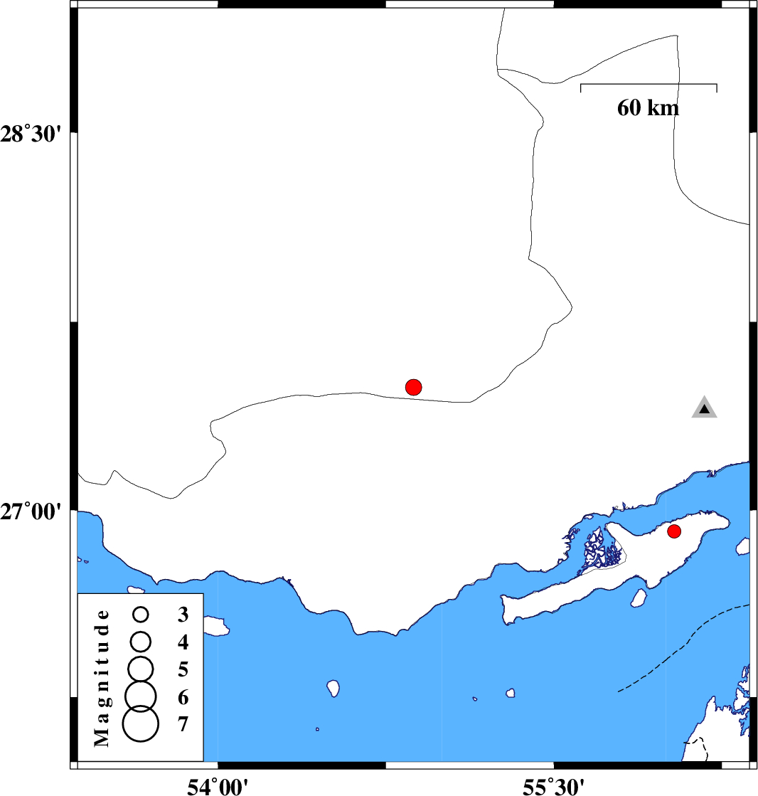 | 2017/07/19 | 22:06:43.5 | 02:36:43.5 | 26.914 | 56.037 | 12 | ML2.7 | Persian Gulf, 23 km -West of Qeshm |