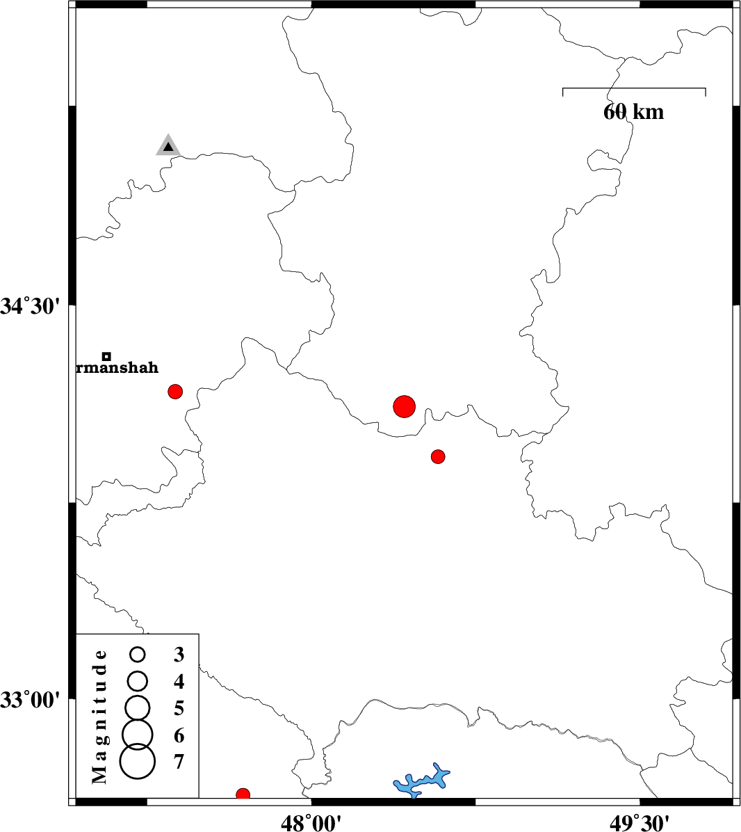 | 2017/07/27 | 20:10:32.2 | 00:40:32.2 | 34.172 | 47.378 | 14 | ML2.9 | Kermanshah Province, 21 km -West of Harsin | ||