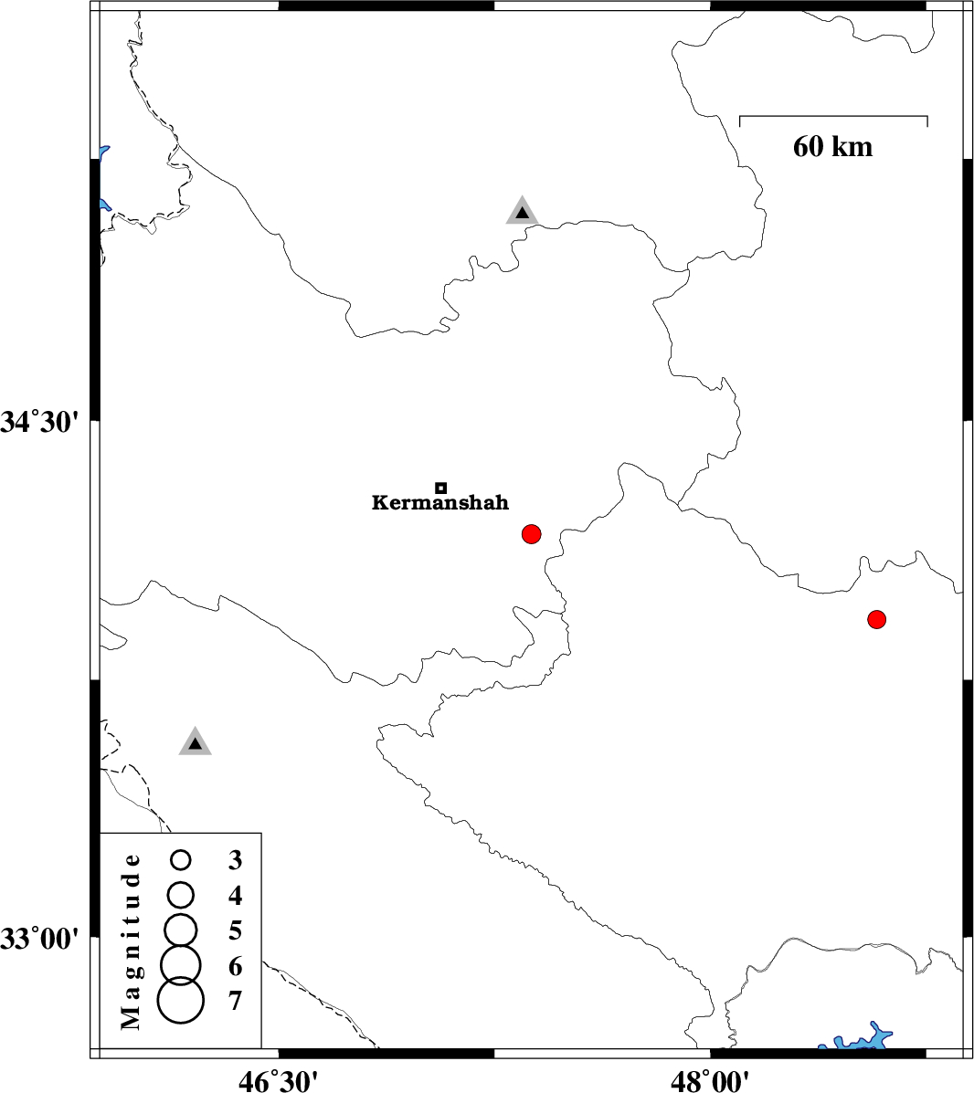 | 2017/07/27 | 20:10:32.2 | 00:40:32.2 | 34.172 | 47.378 | 14 | ML2.9 | Kermanshah Province, 21 km -West of Harsin | ||