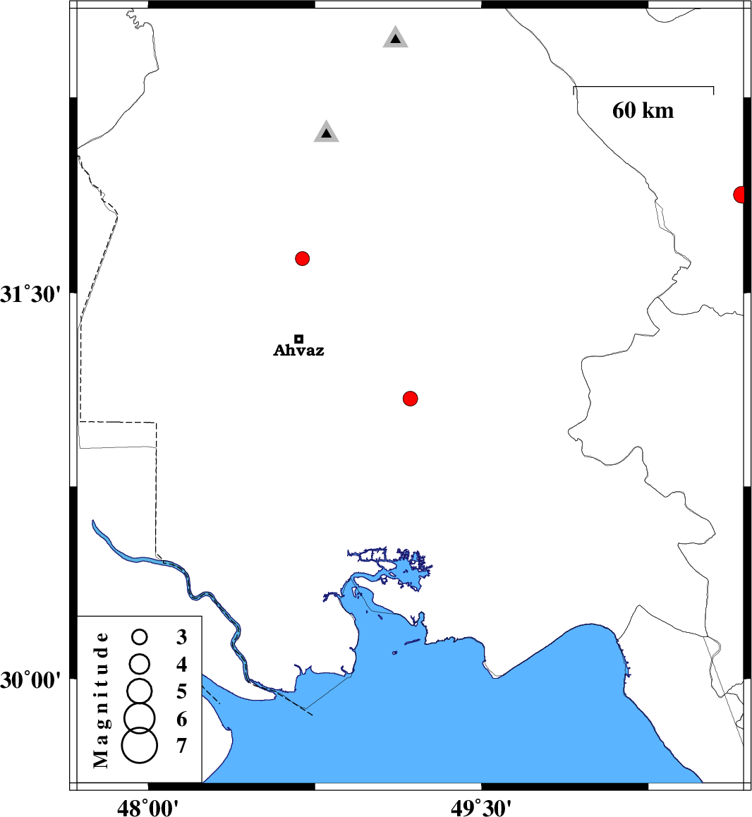 | 2017/08/01 | 16:26:48.7 | 20:56:48.7 | 31.631 | 48.693 | 15 | ML2.8 | Khoozestan Province, 35 km North of Ahvaz | ||