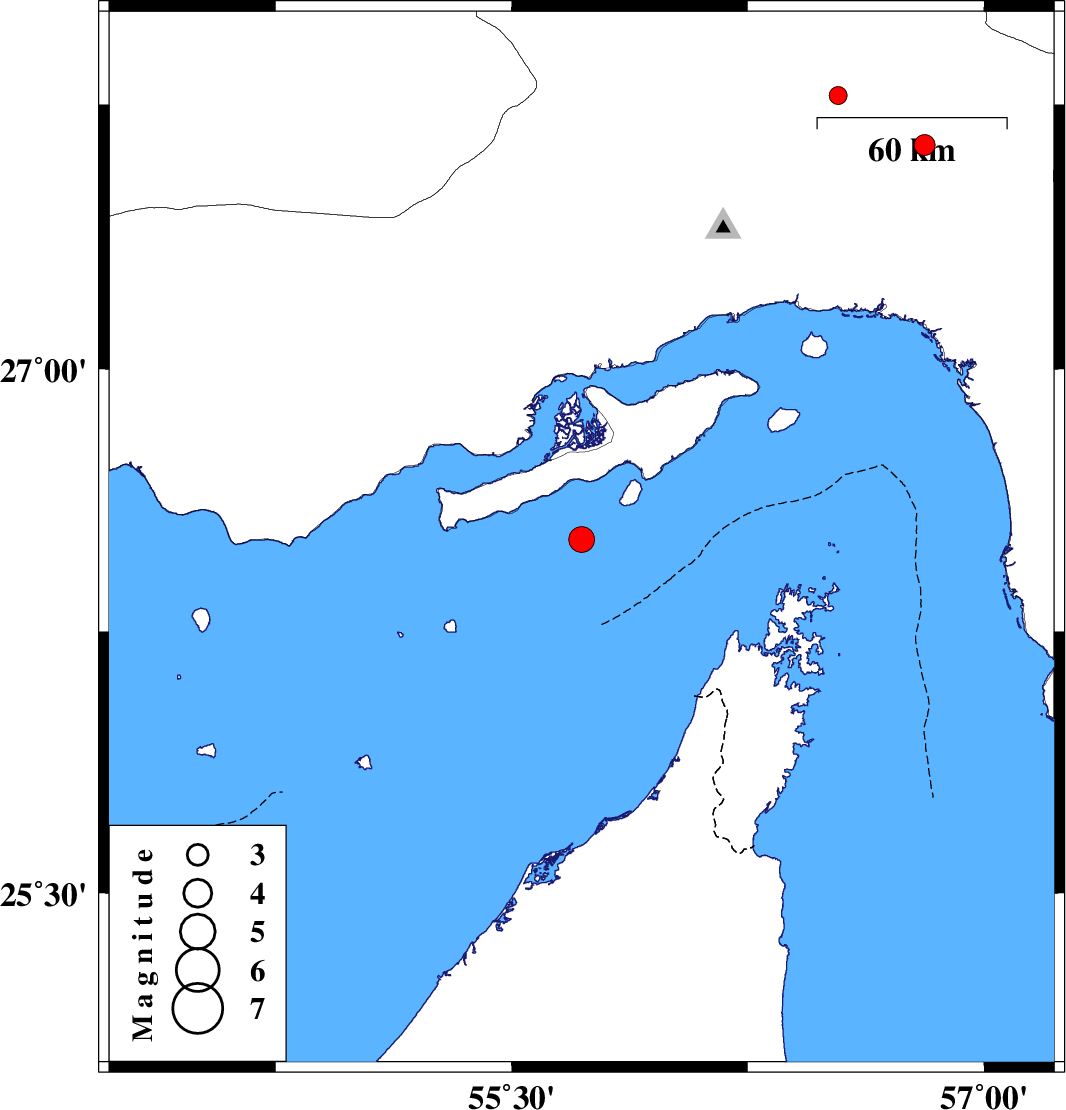 | 2017/08/06 | 09:24:39.6 | 13:54:39.6 | 26.513 | 55.722 | 23 | ML3.6 | Persian Gulf, 87 km -East of Bandar-e lengeh | ||