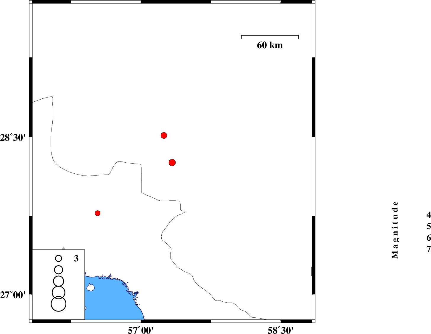 | 2017/08/01 | 06:58:10.3 | 11:28:10.3 | 27.775 | 56.536 | 21 | ML2.6 | Hormozgan Province, 70 km North-East of Bandar-e abbas |