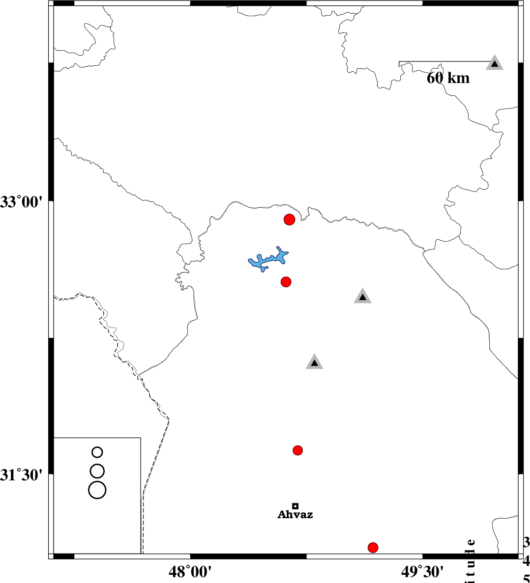 | 2017/08/01 | 16:26:48.7 | 20:56:48.7 | 31.631 | 48.693 | 15 | ML2.8 | Khoozestan Province, 35 km North of Ahvaz |