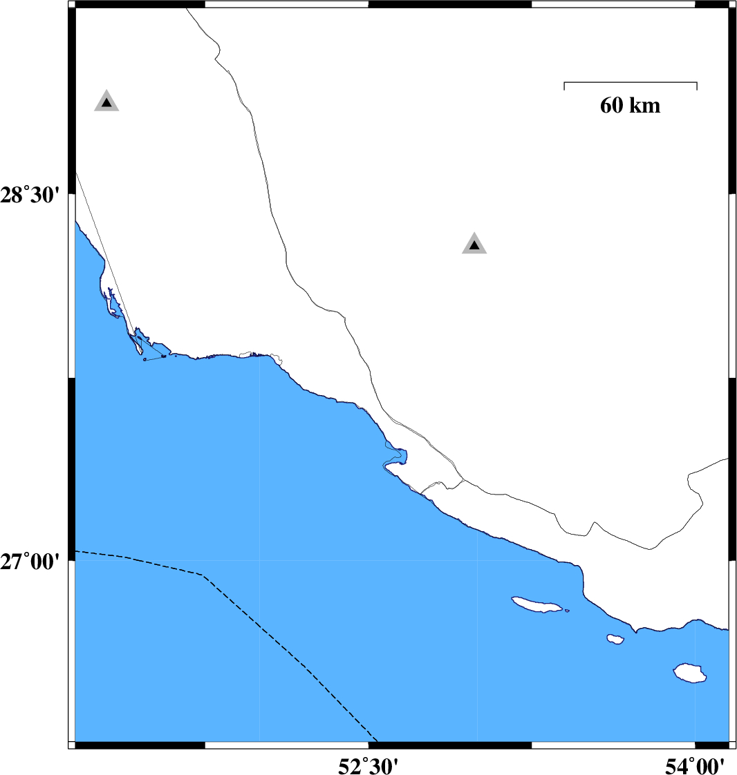 | 2017/08/09 | 19:02:37.5 | 23:32:37.5 | 27.455 | 53.521 | 15 | ML3.2 | Fars Province, 37 km North-East of Lamerd | ||