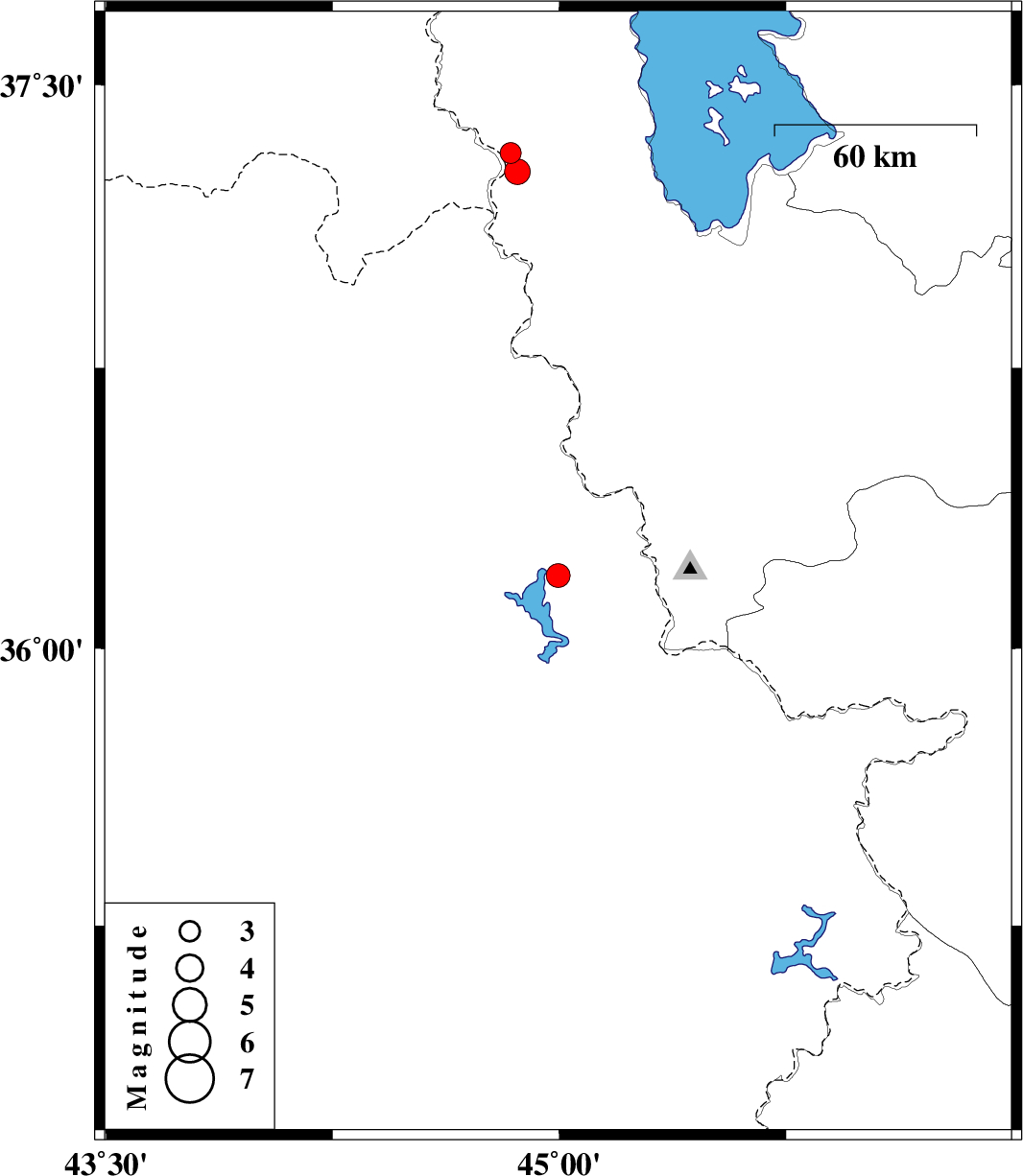 | 2017/07/30 | 04:09:01.7 | 08:39:01.7 | 37.321 | 44.839 | 14 | ML3.1 | Azarbaijan Gharbi Province, 32 km South-West of Orumiyeh | ||