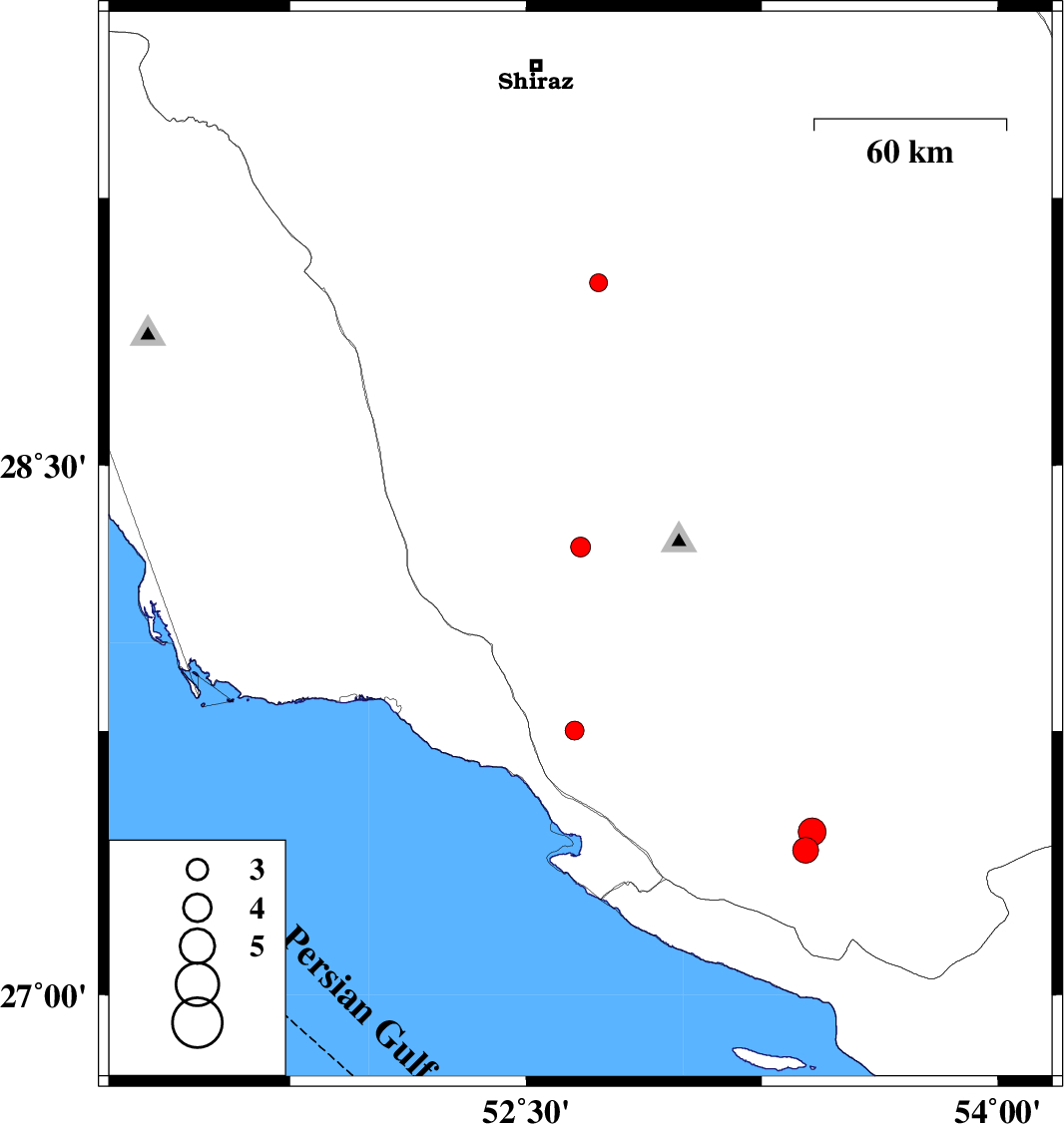 | 2017/08/10 | 13:50:15.3 | 18:20:15.3 | 27.464 | 53.409 | 15 | ML3.9 | Fars Province, 28 km North-East of Lamerd |