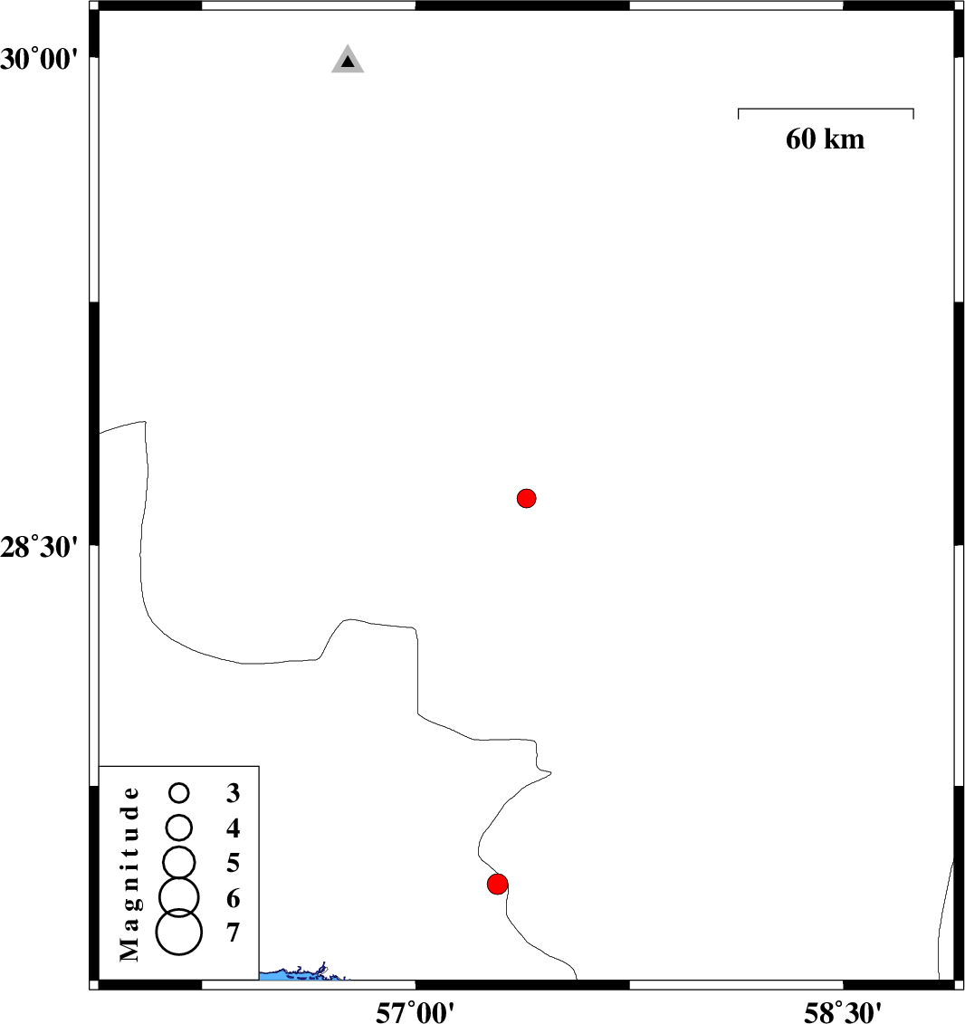 | 2017/08/25 | 16:33:26.5 | 21:03:26.5 | 28.643 | 57.388 | 17 | ML3 | Kerman Province, 34 km -West of Jiroft | ||