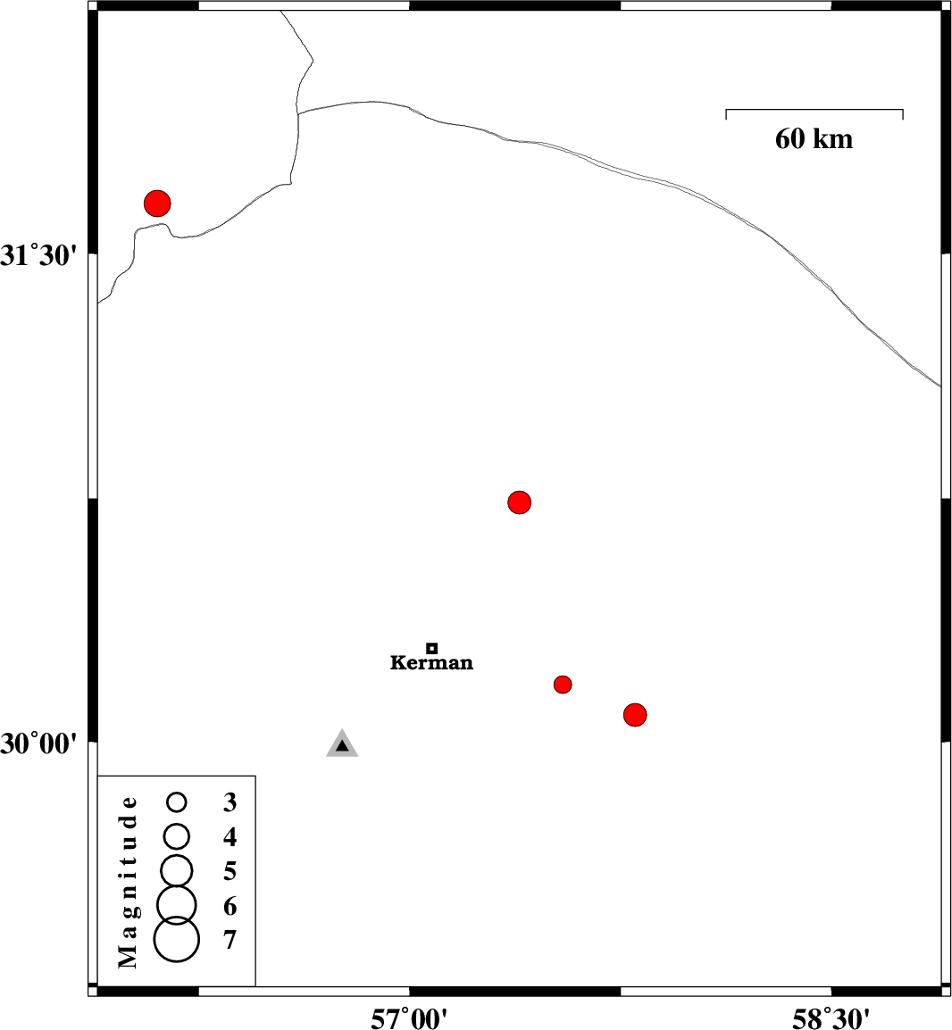 | 2017/08/27 | 21:46:20.4 | 02:16:20.4 | 30.083 | 57.802 | 6 | ML3.7 | Kerman Province, 73 km South-East of Kerman | ||