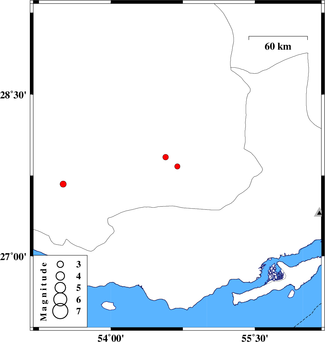 | 2017/08/29 | 17:19:11.4 | 21:49:11.4 | 27.921 | 54.57 | 18 | ML2.7 | Fars Province, 35 km North-East of Lar |