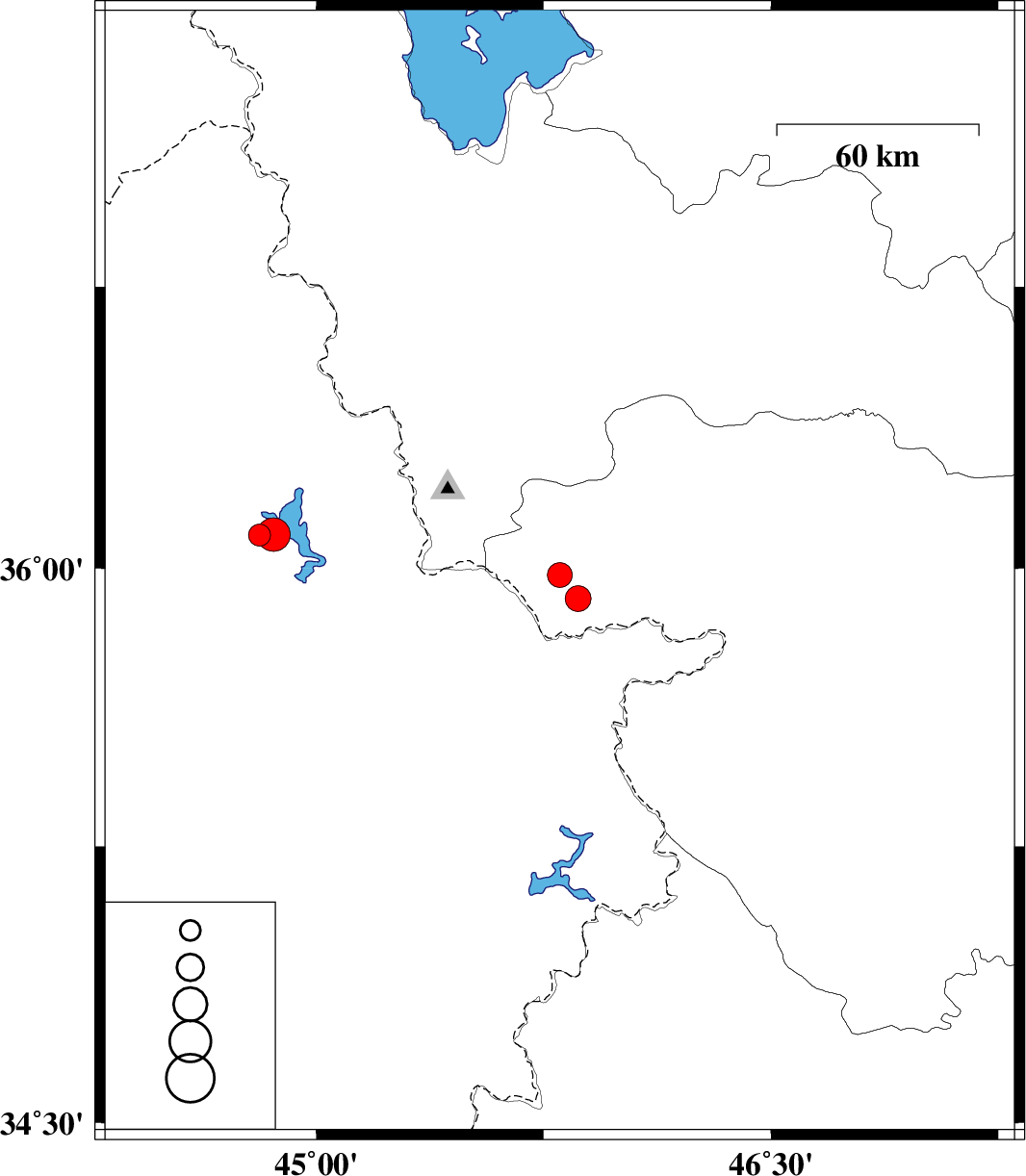 | 2017/08/30 | 11:32:23.5 | 16:02:23.5 | 35.918 | 45.863 | 14 | ML3.8 | Kurdistan Province, 8 km of Baneh | ||