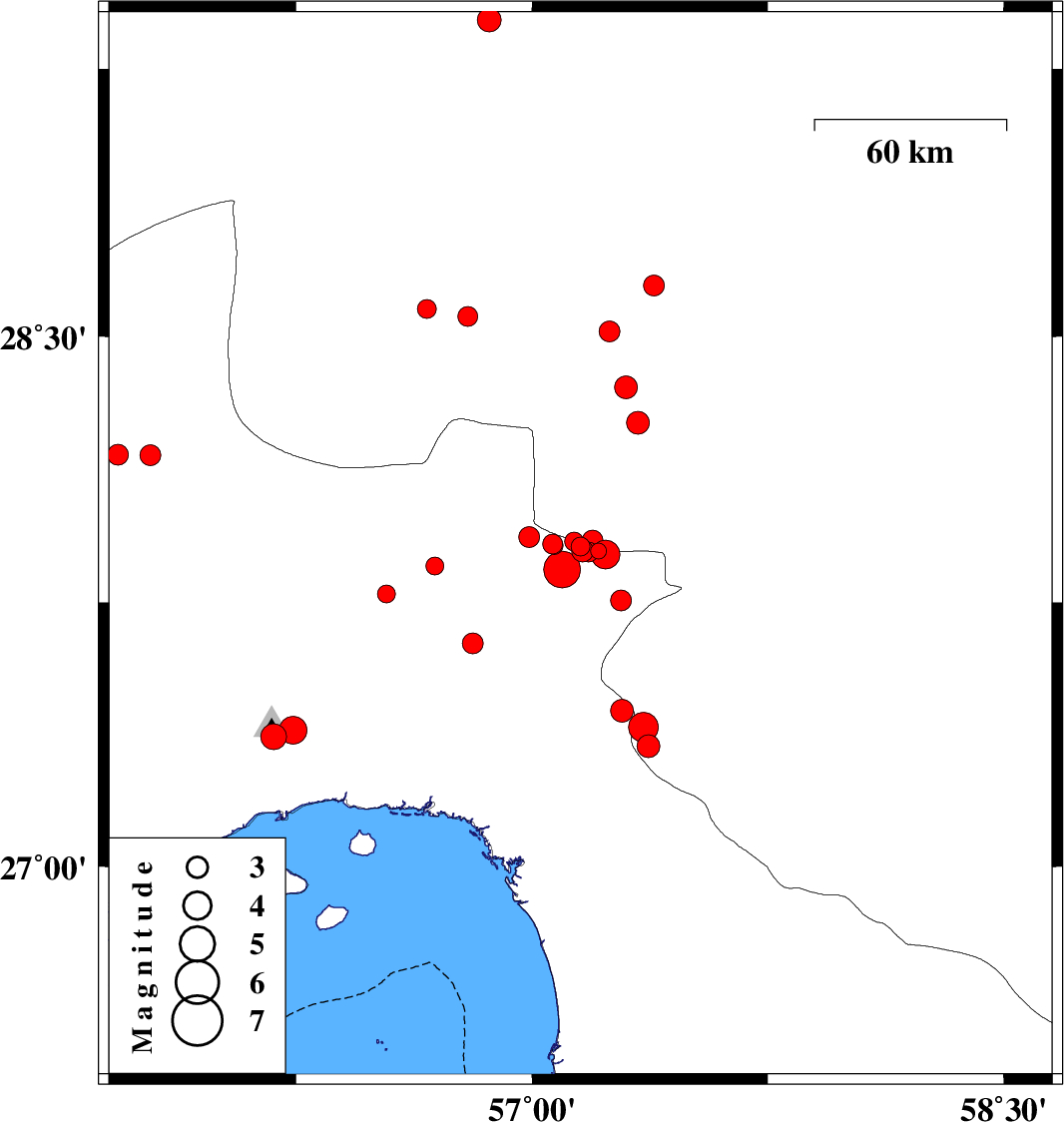 2017/08/05 21:40:45.6 02:10:45.6 27.63556.81114 ML2.9 Hormozgan Province, 48 km North-West of Dehbarez