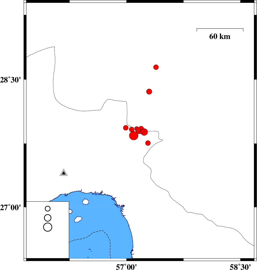 2017/08/26 00:41:41.1 05:11:41.1 27.75657.28217 ML3 Hormozgan Province, 37 km North of Dehbarez