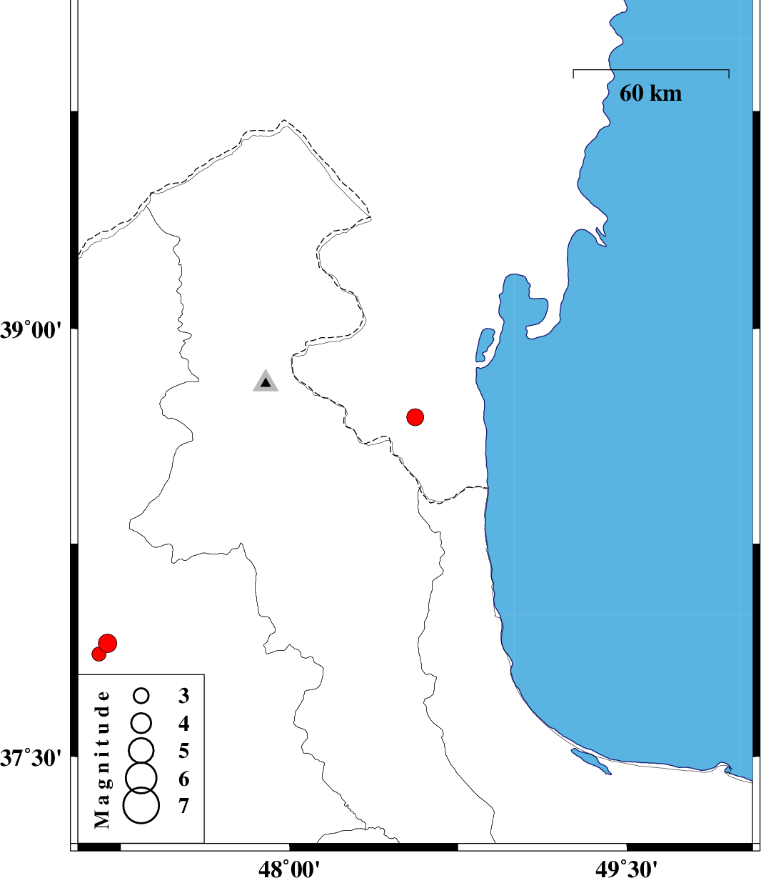 | 2017/09/06 | 04:52:59.9 | 09:22:59.9 | 37.862 | 47.152 | 14 | ML2.8 | Azarbaijan Sharghi Province, 27 km -East of Bostanabad |
