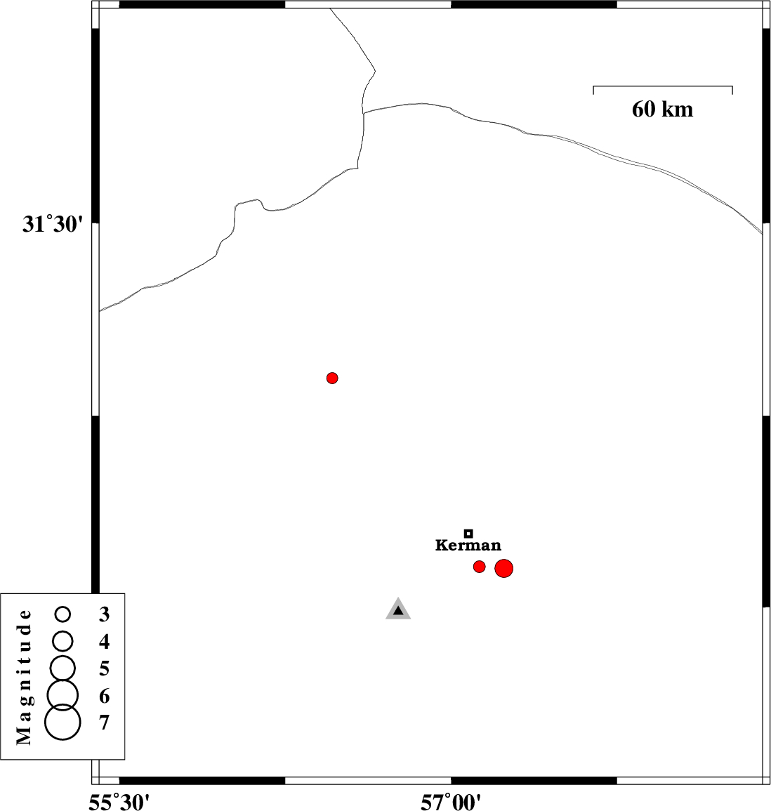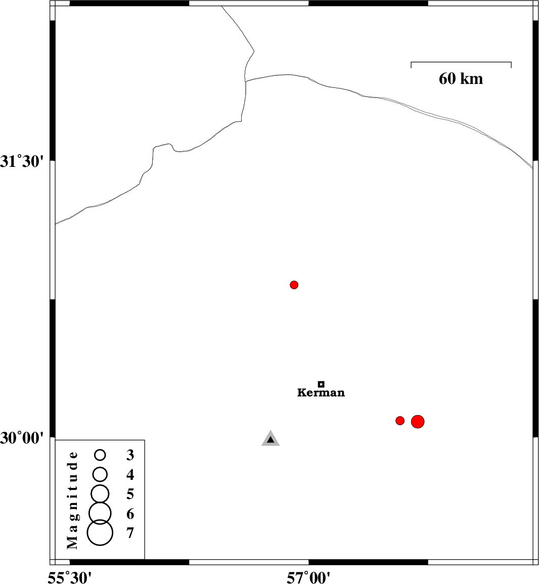 | 2017/09/10 | 23:53:51.3 | 04:23:51.3 | 30.084 | 57.685 | 6 | ML3.6 | Kerman Province, 63 km South-East of Kerman |