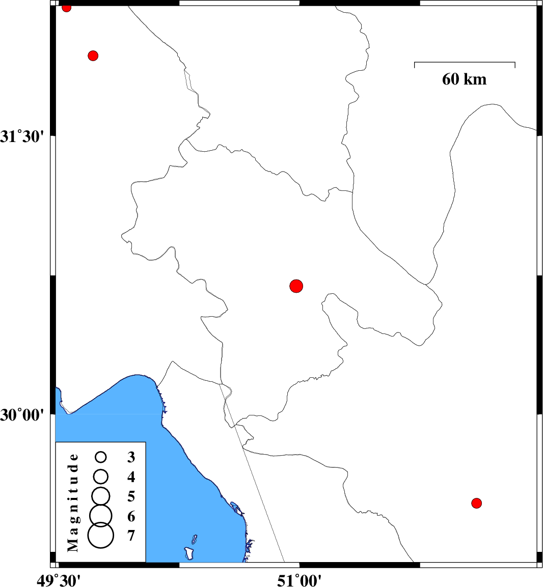 | 2017/09/19 | 21:00:14.0 | 01:30:14.0 | 30.693 | 50.979 | 15 | ML3.7 | Kohkiluieh va boyerahmad Province, 41 km -East of Dehdasht | ||