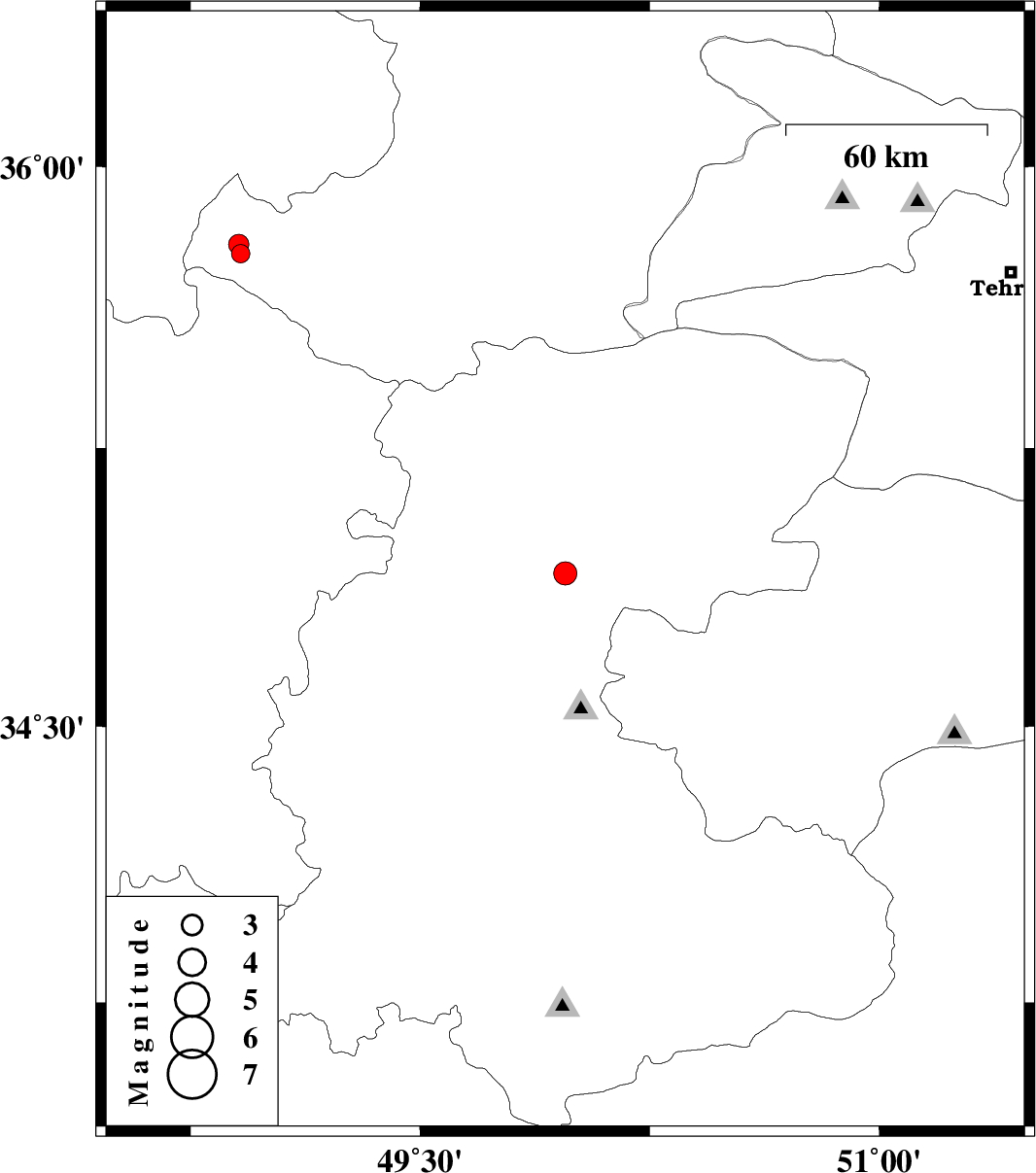 | 2017/09/13 | 13:41:21.4 | 18:11:21.4 | 35.769 | 48.914 | 14 | ML2.7 | Ghazvin Province, 44 km North-West of Razan | ||