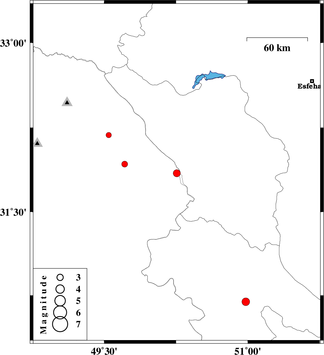 | 2017/09/05 | 16:54:42.3 | 21:24:42.3 | 32.184 | 49.547 | 14 | ML2.5 | Khoozestan Province, 36 km North-East of Masjed Soleyman |
