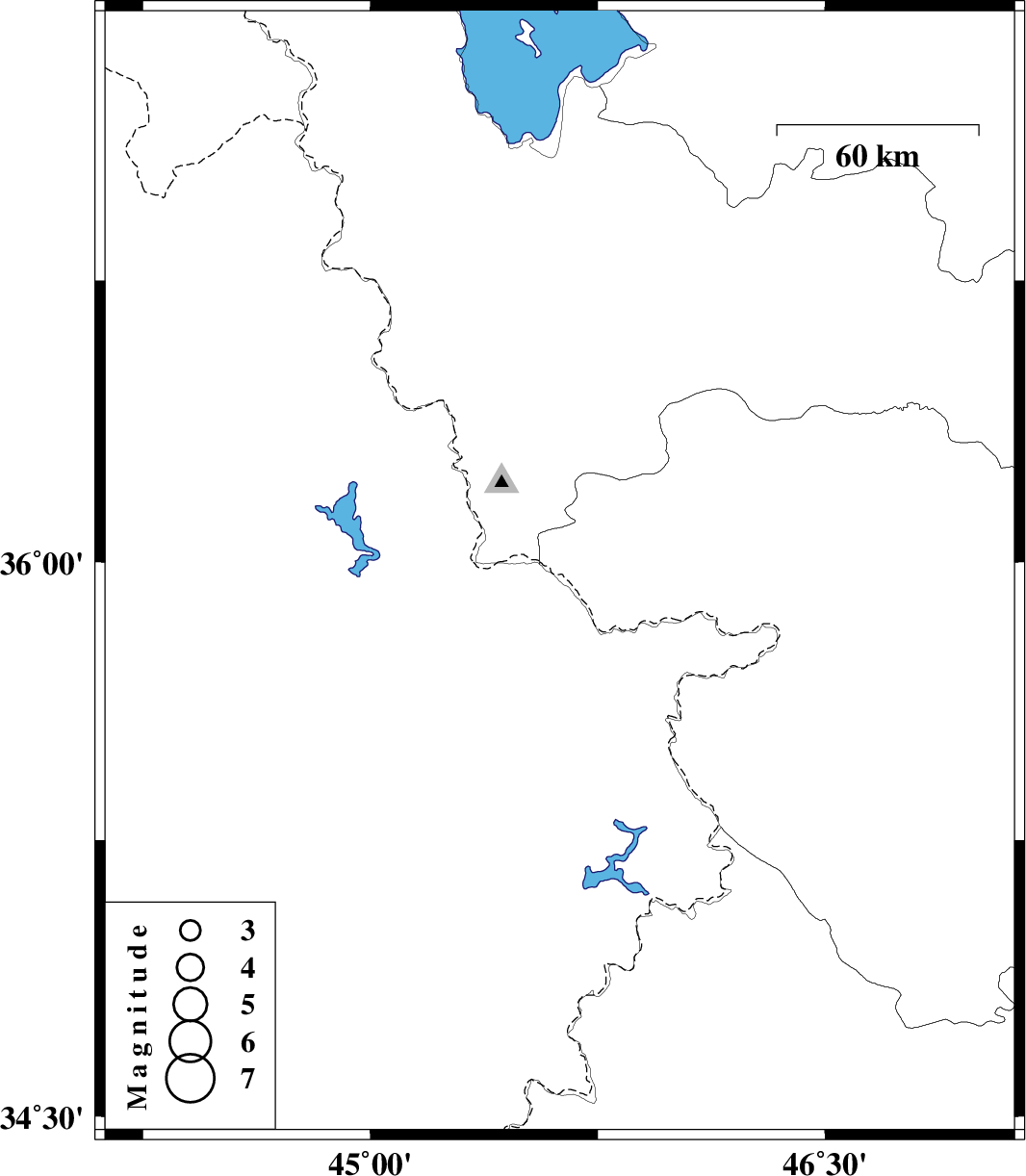 | 2017/09/21 | 05:47:11.6 | 10:17:11.6 | 35.964 | 45.625 | 14 | ML2.5 | Kurdistan Province, 24 km -West of Baneh |