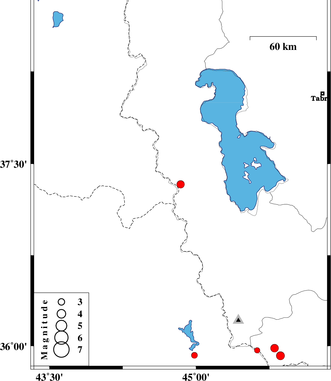 | 2017/09/26 | 06:57:02.1 | 10:27:02.1 | 37.333 | 44.842 | 14 | ML3.5 | Azarbaijan Gharbi Province, 31 km South-West of Orumiyeh | ||